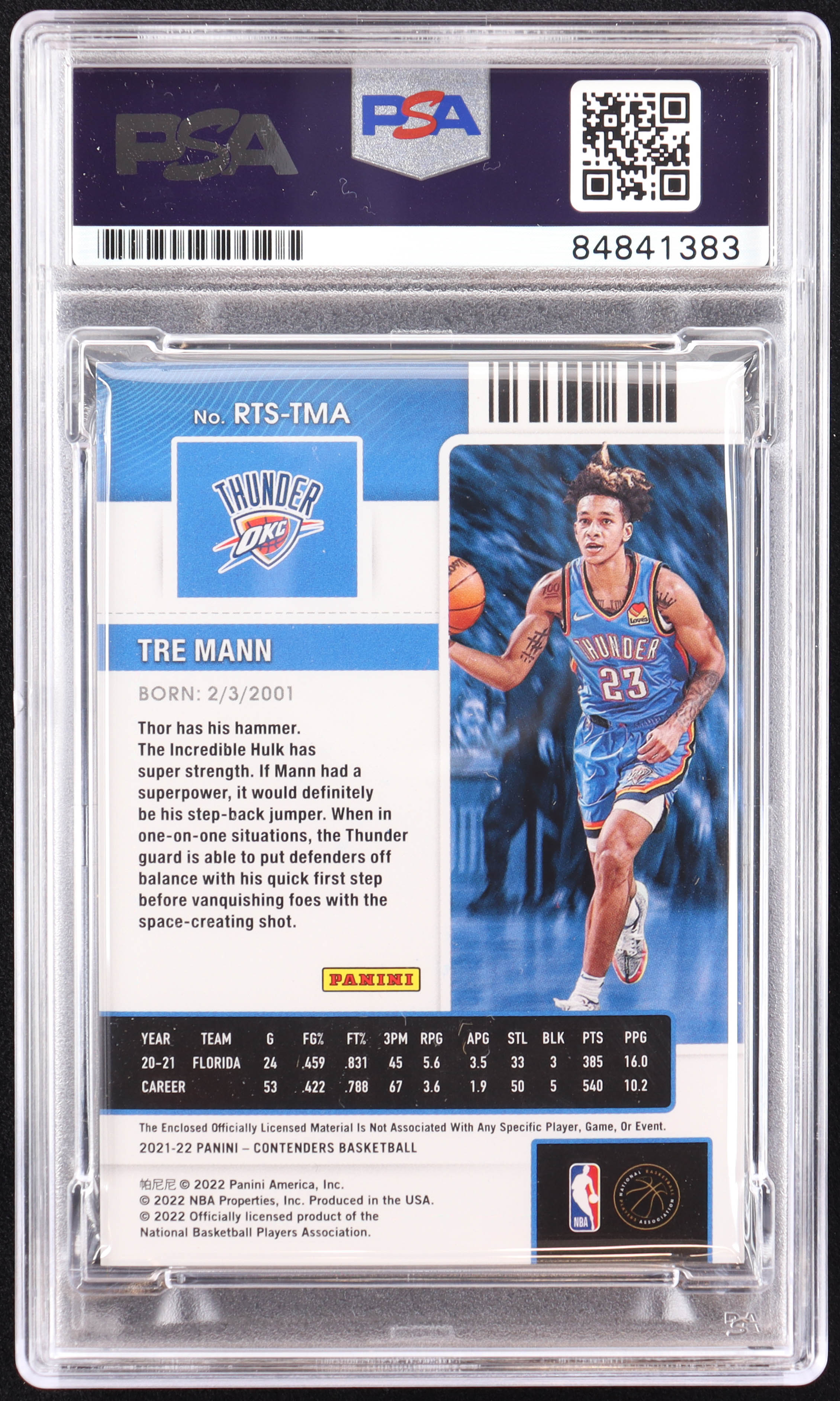 Tre Mann Signed 2021-22 Panini Contenders Rookie Ticket Swatches #RTSTMA RC (PSA)