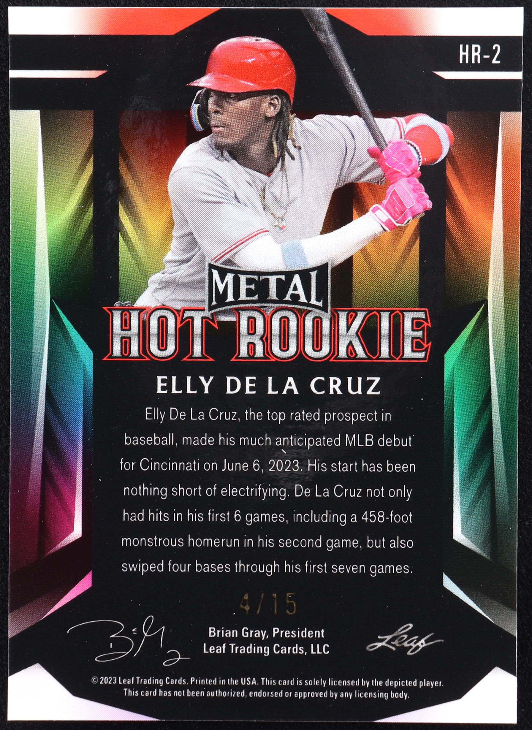 Elly De La Cruz 2023 Leaf Metal Hot Rookie Wave Blue #HR2 RC #4/15