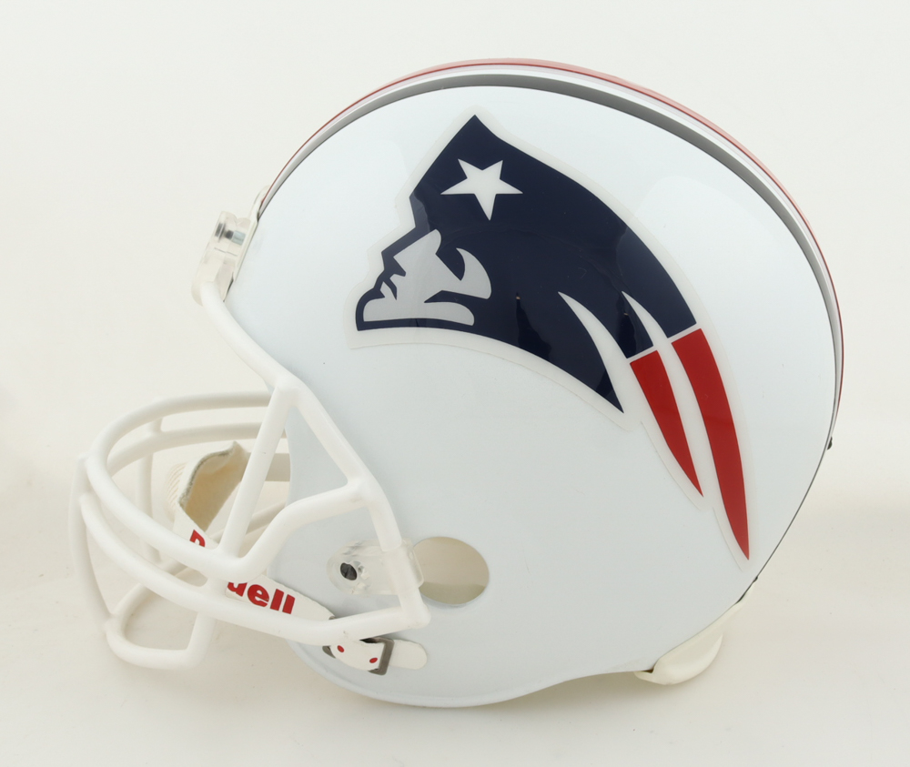 Riddell New England Patriots full-size flat white alternate replica Speed helmet. Hand-signed by Rob Gronkowski.