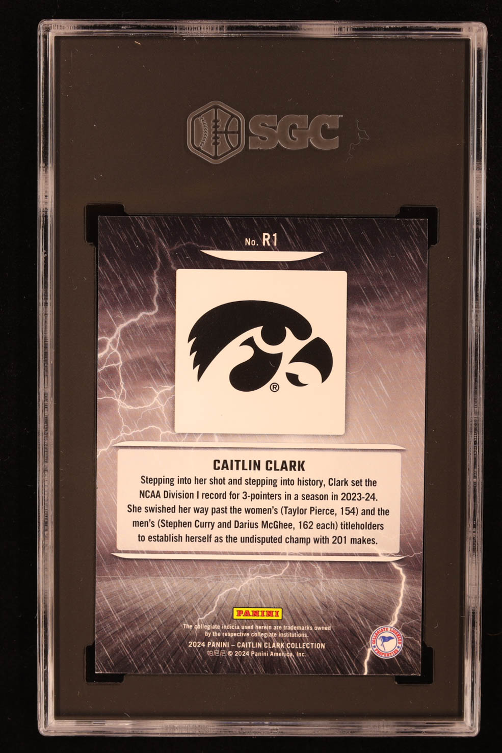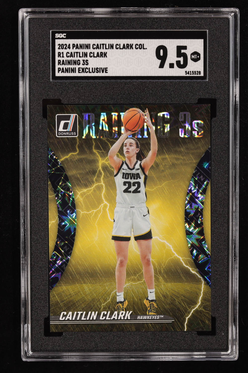 Caitlin Clark 2024 Panini Caitlin Clark Collection Raining 3's #R1 RC (SGC 9.5)