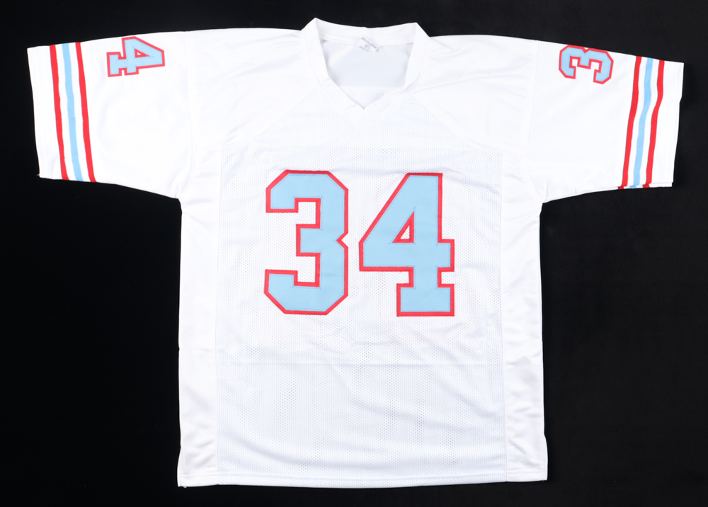 Custom jersey. Everything sewn on, size XL. Hand-signed by Earl Campbell (HOF).