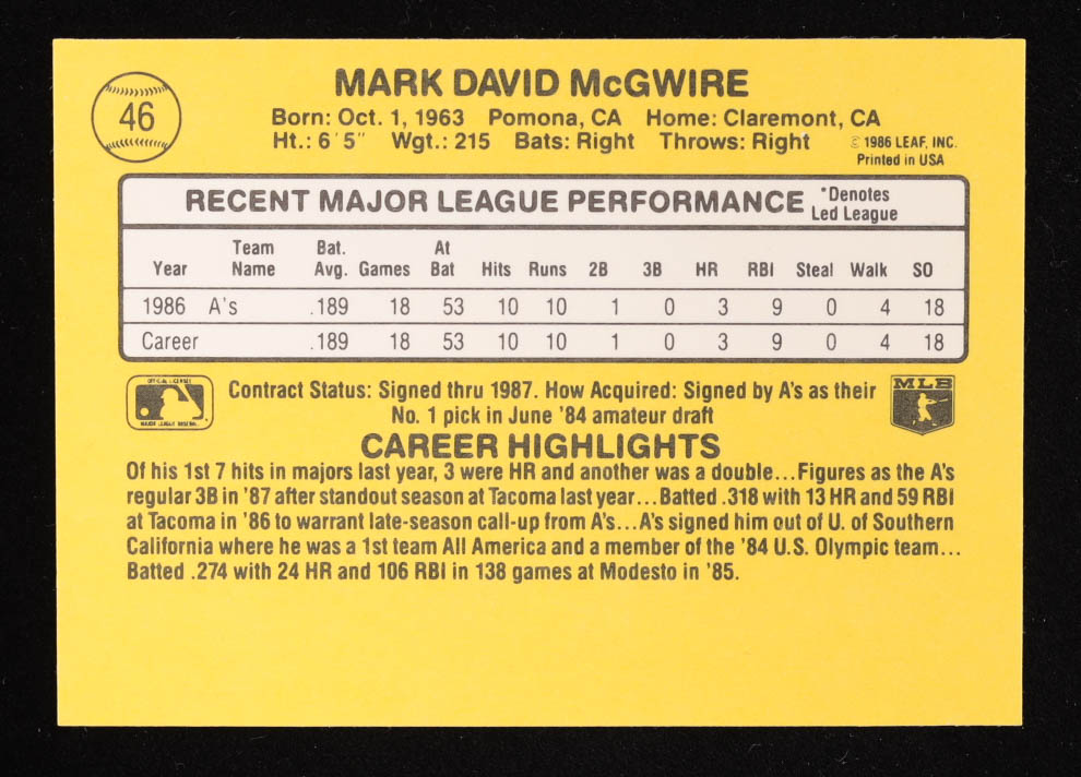 Mark McGwire 1987 Leaf/Donruss #46 RR RC