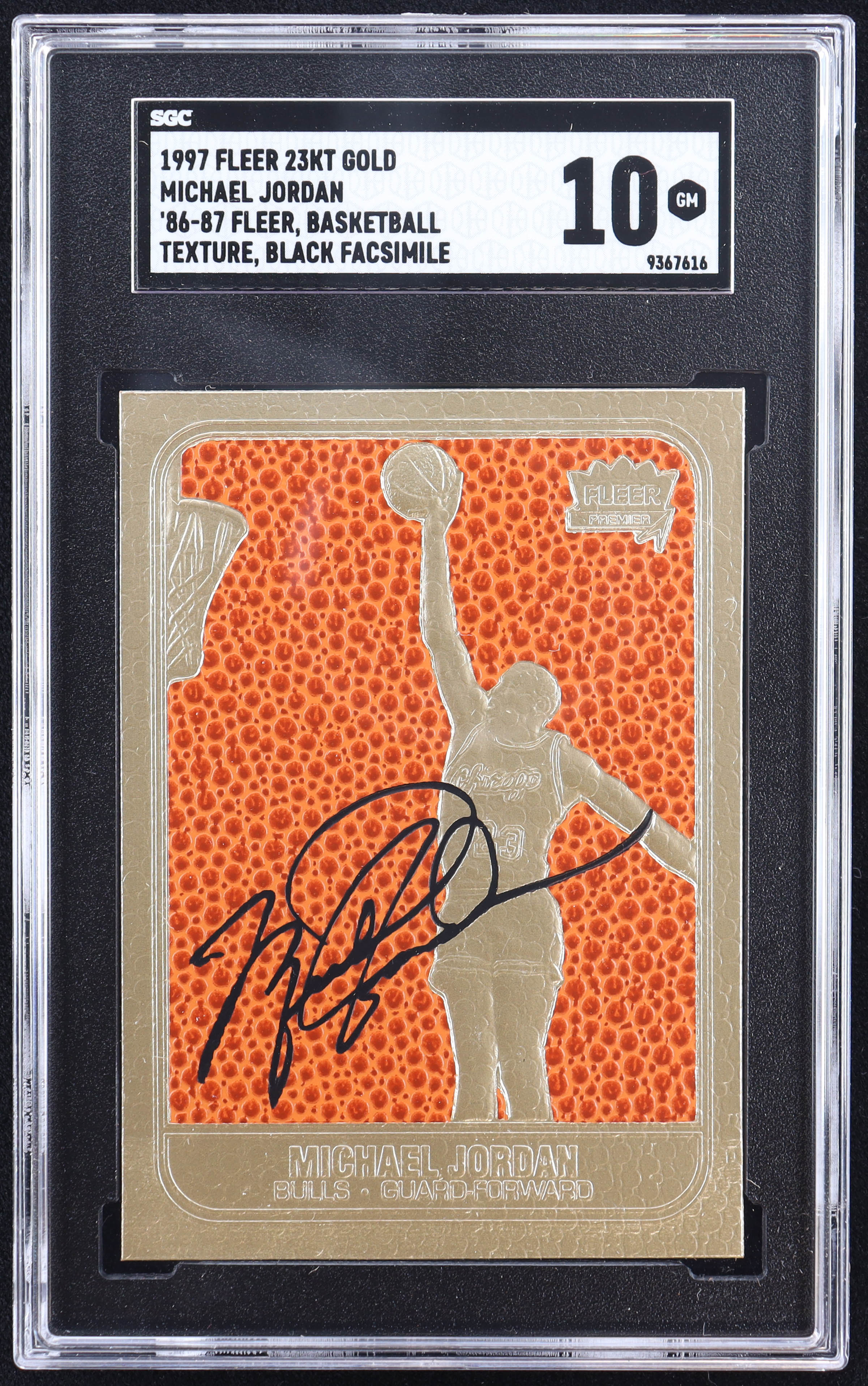Michael Jordan 1996-97 Fleer 23Kt Gold Basketball Texture Black Facsimile / '86-87 Fleer (SGC 10)