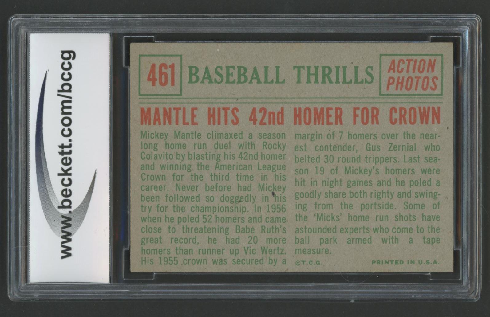 Mickey Mantle 1959 Topps #461 Baseball Thrills (BCCG 9)