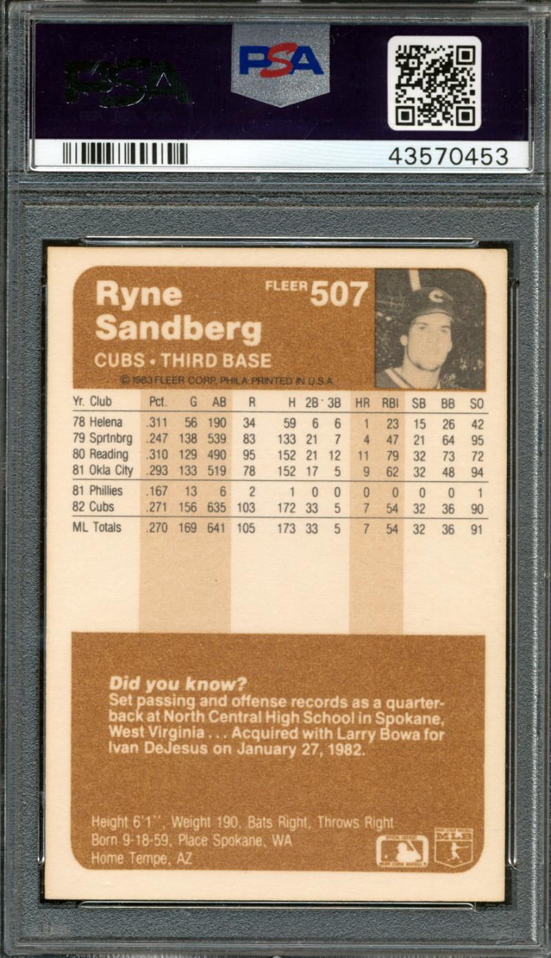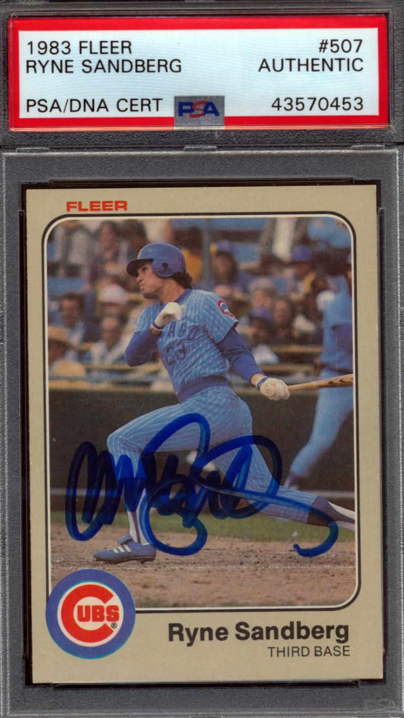 Ryne Sandberg Signed 1983 Fleer #507 RC (PSA)