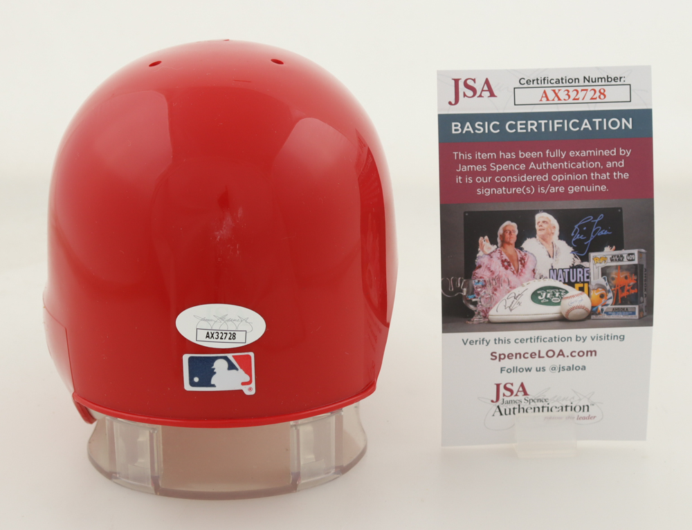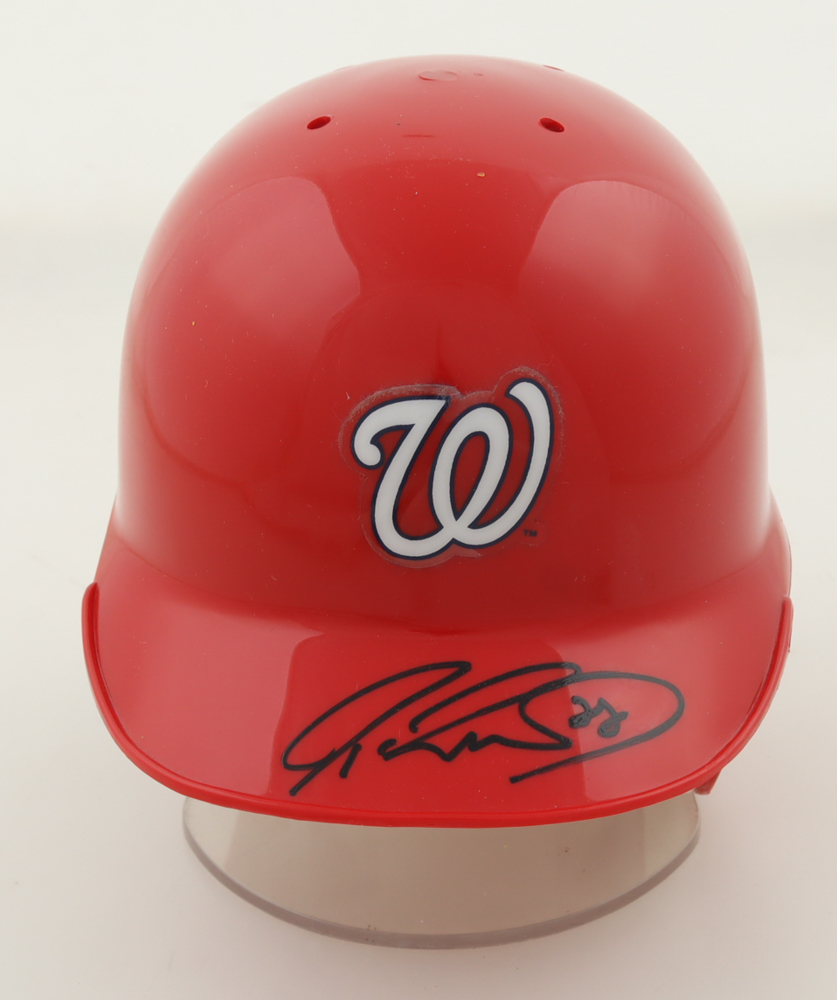 Riddell Washington Nationals replica mini batting helmet. Hand-signed by Jayson Werth. Please note, display stand is not included as shown and there is residue on the rear of the helmet.