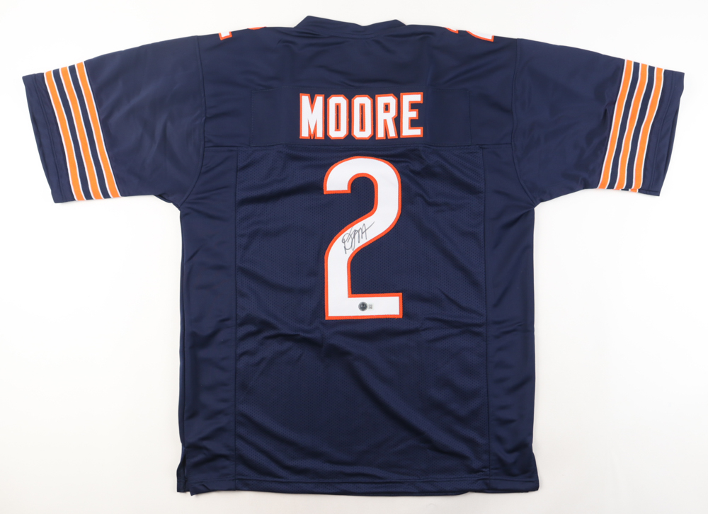 Custom jersey. Everything sewn on, size XL. Hand-signed by D. J. Moore.