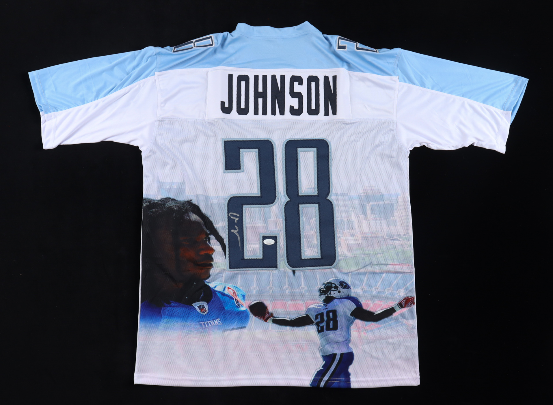 Custom jersey. Everything is sewn on, size XL. Hand-signed by Chris Johnson.