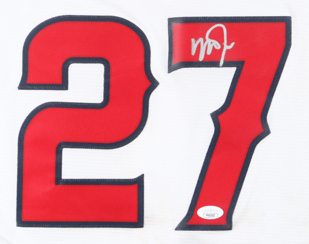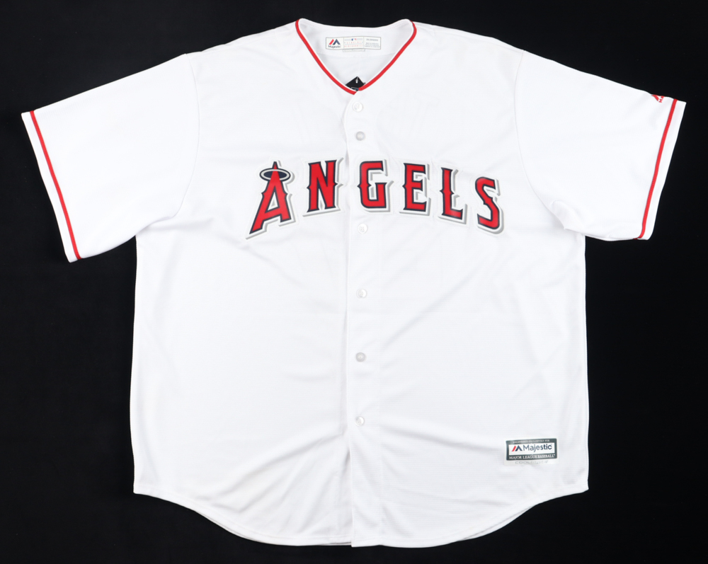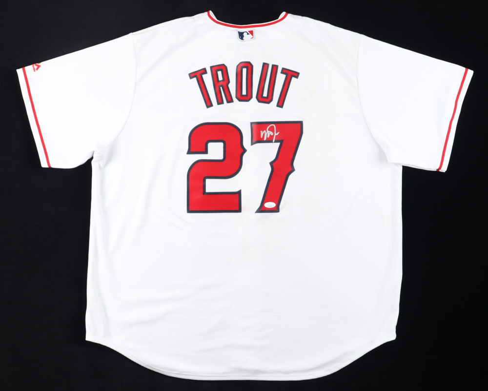 Custom baseball jersey. Everything sewn on, size XL. Hand-signed by Mike Trout.