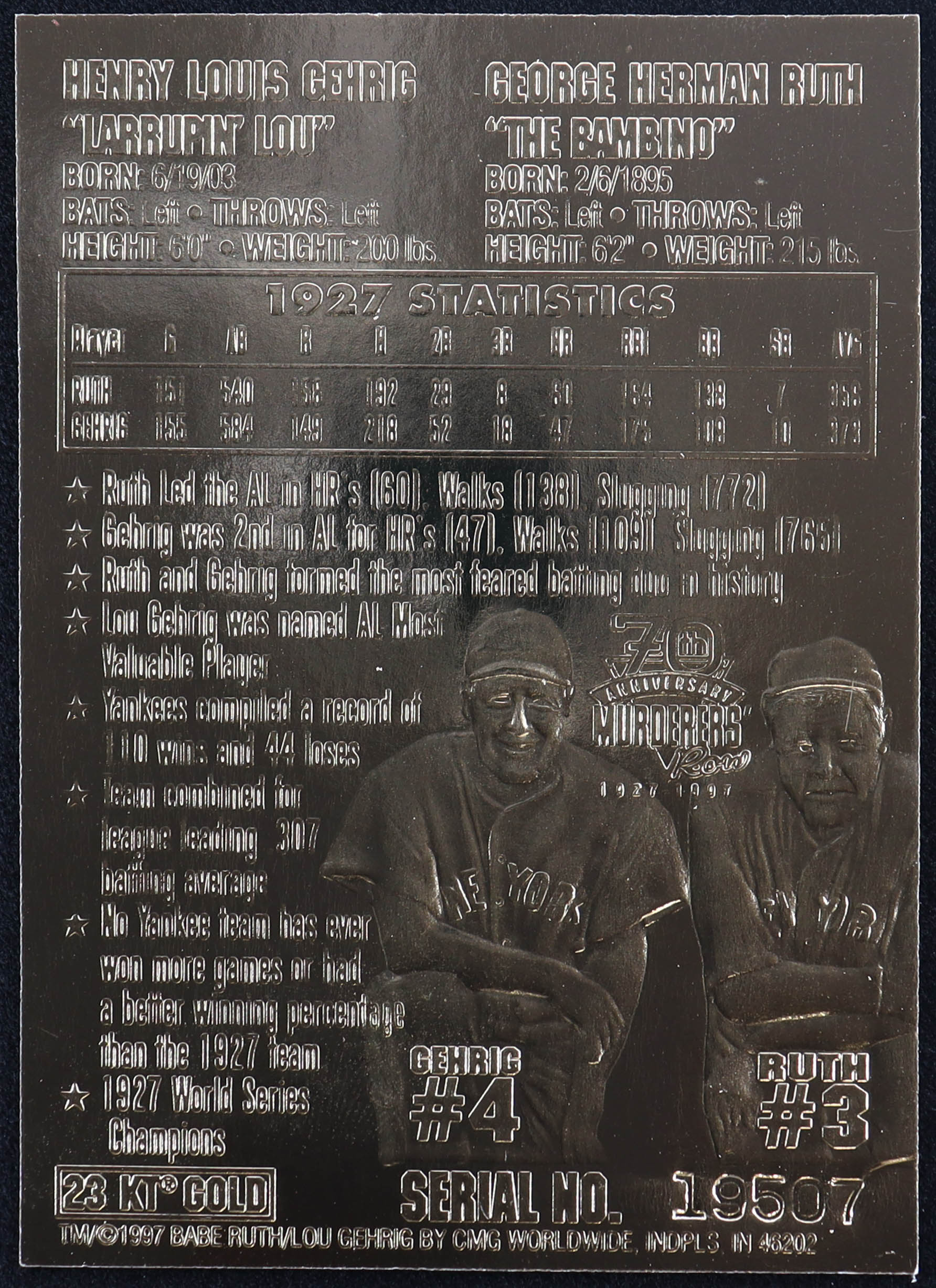 Babe Ruth & Lou Gehrig 1997 CMG Worldwide 70th Anniversary Murderers' Row 23Kt Gold Card #19507