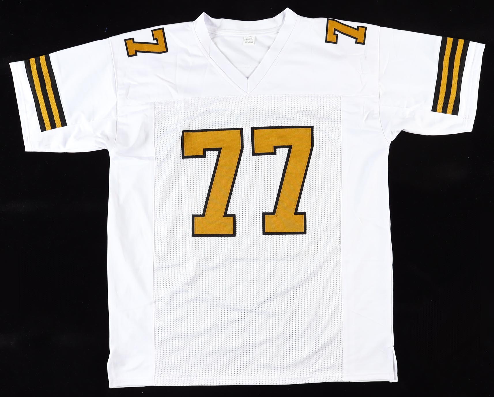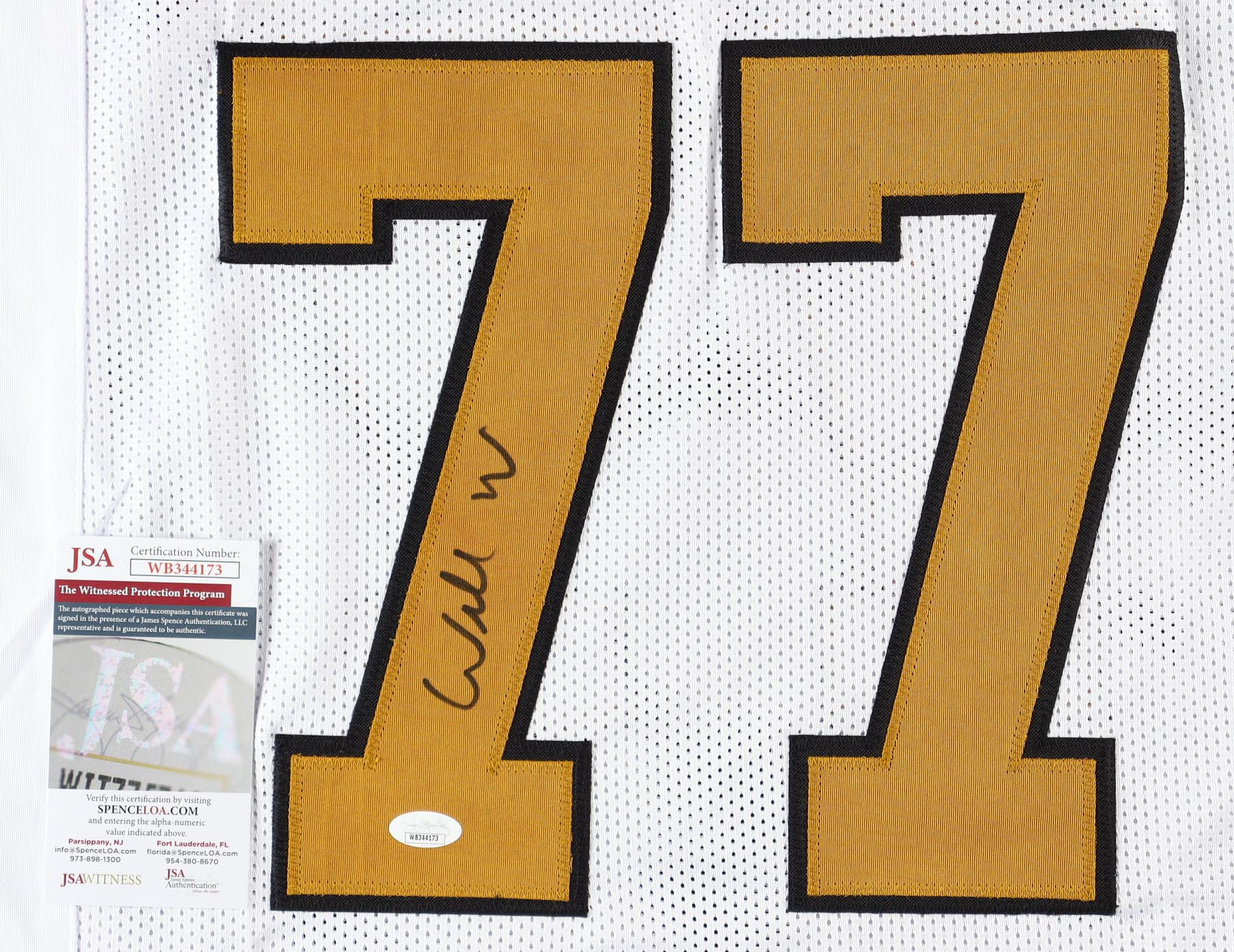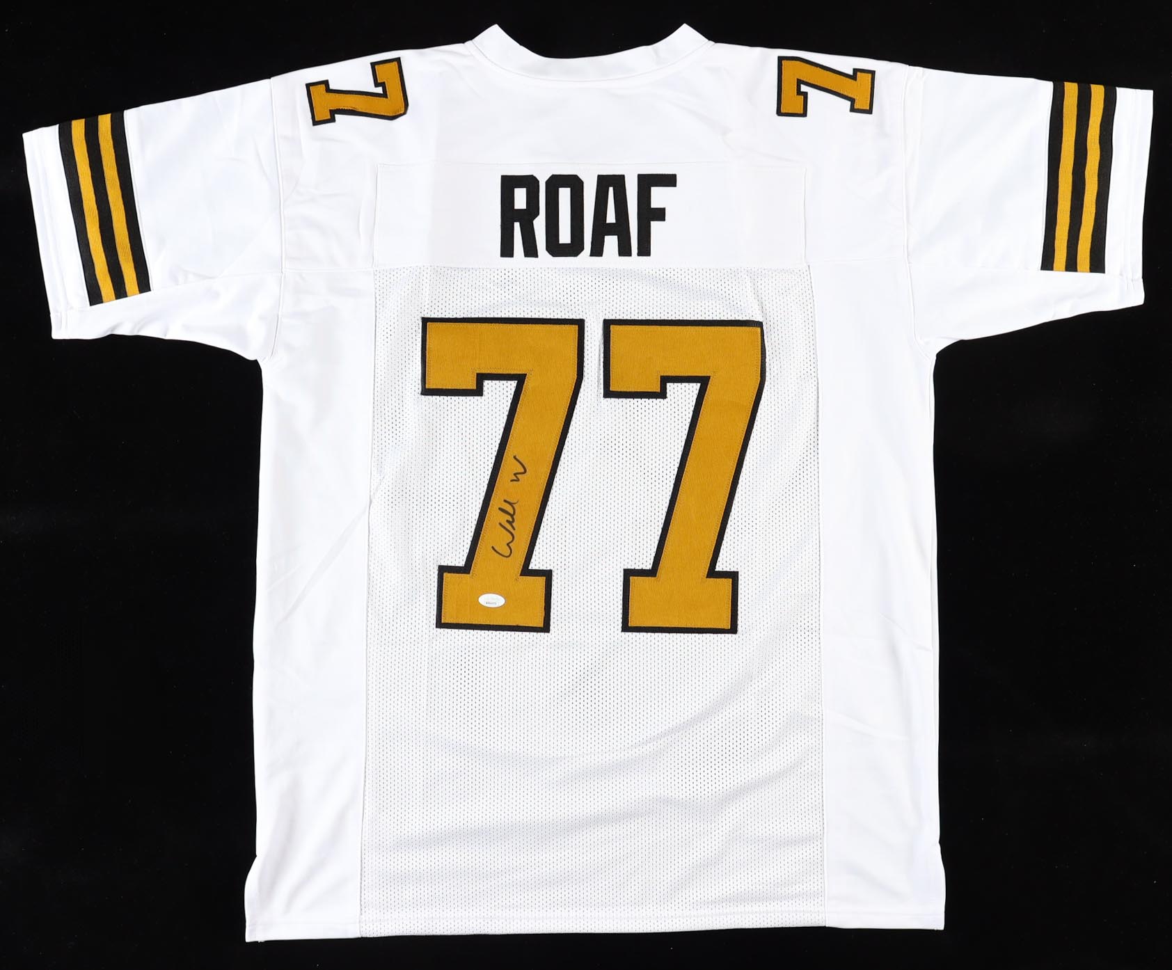 Custom jersey with everything sewn on, size XL. Hand-signed by Willie Roaf (HOF).