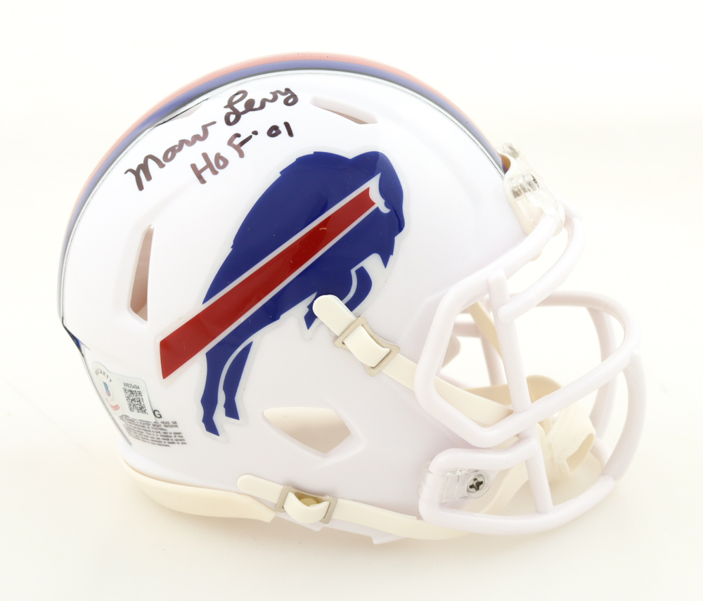 Riddell Buffalo Bills speed mini helmet. Hand-signed and inscribed by Marc Levy.