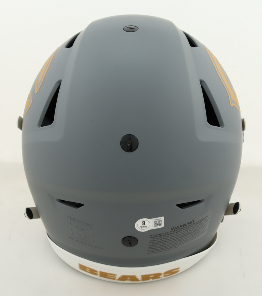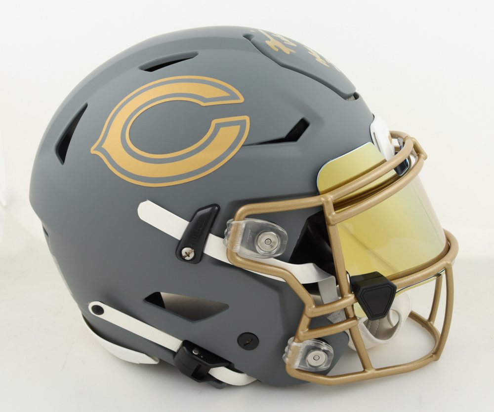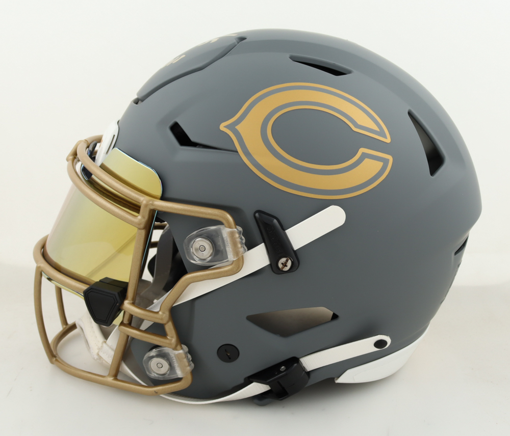 Riddell Chicago Bears full-size authentic on-field Slate Speed-Flex helmet with custom visor. Hand-signed and inscribed by Brian Urlacher (HOF).