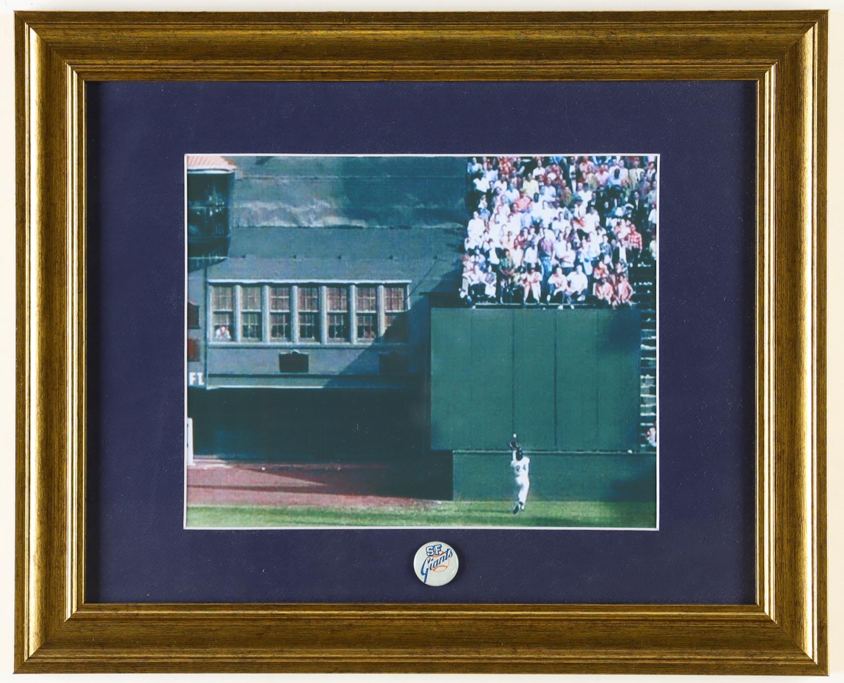 Willie Mays Giants "The Catch" Custom Framed Photo With 1969 Giants Lapel Pin
