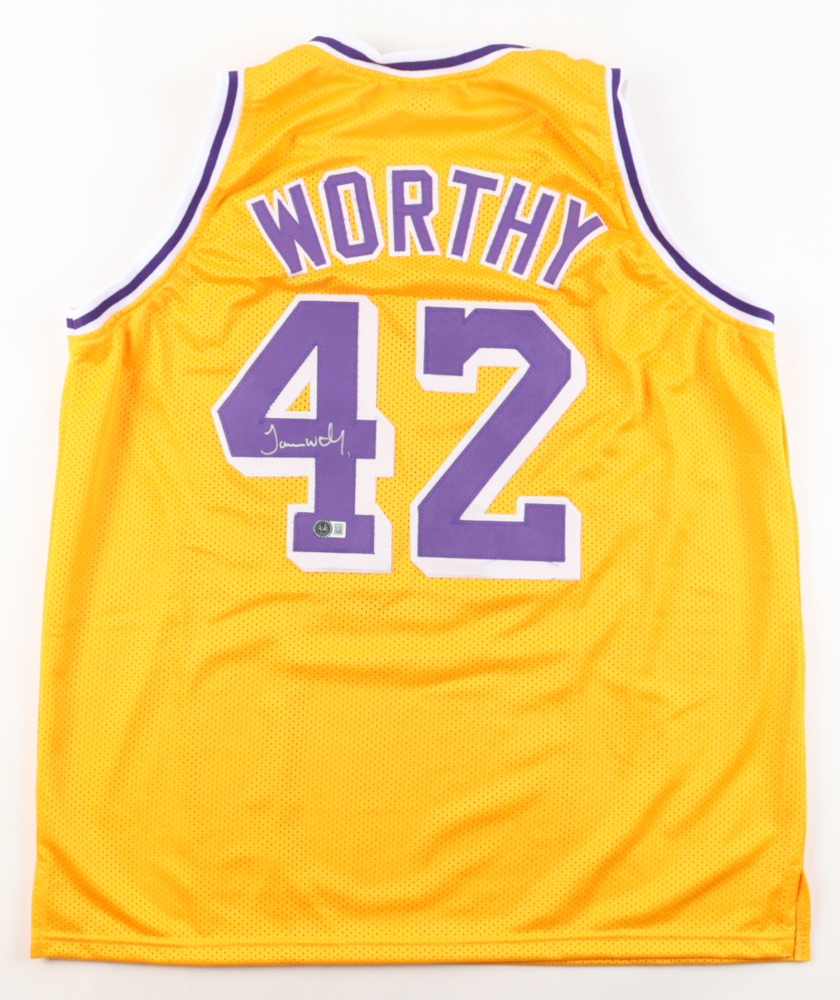 Custom jersey. Everything is sewn on, size XL. Hand-signed by James Worthy (HOF).