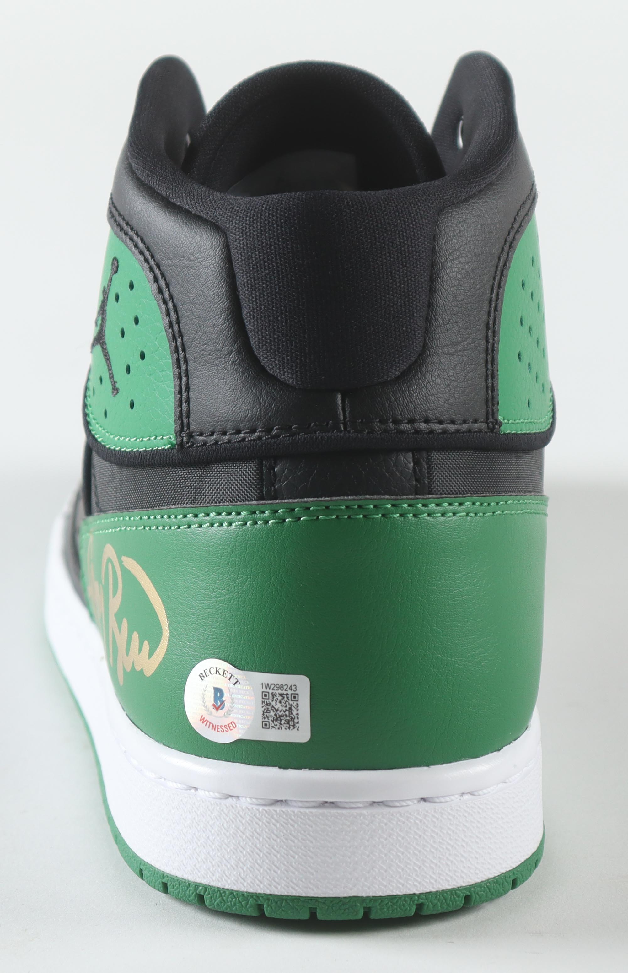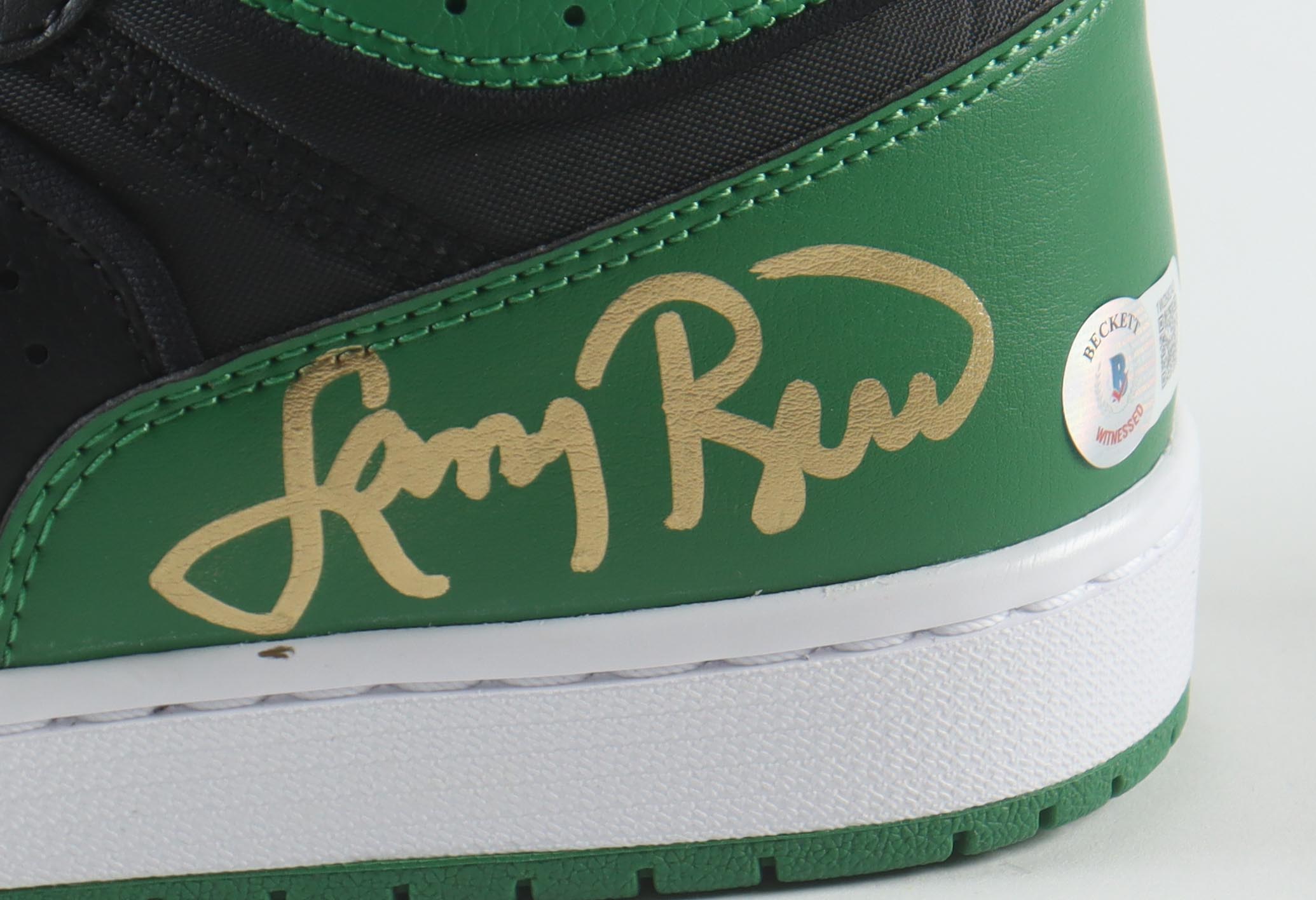 Nike Air Jordan 1 basketball shoe. Hand-signed by Larry Bird (Boston Celtics, HOF). Please refer to photos for the condition of the shoe.