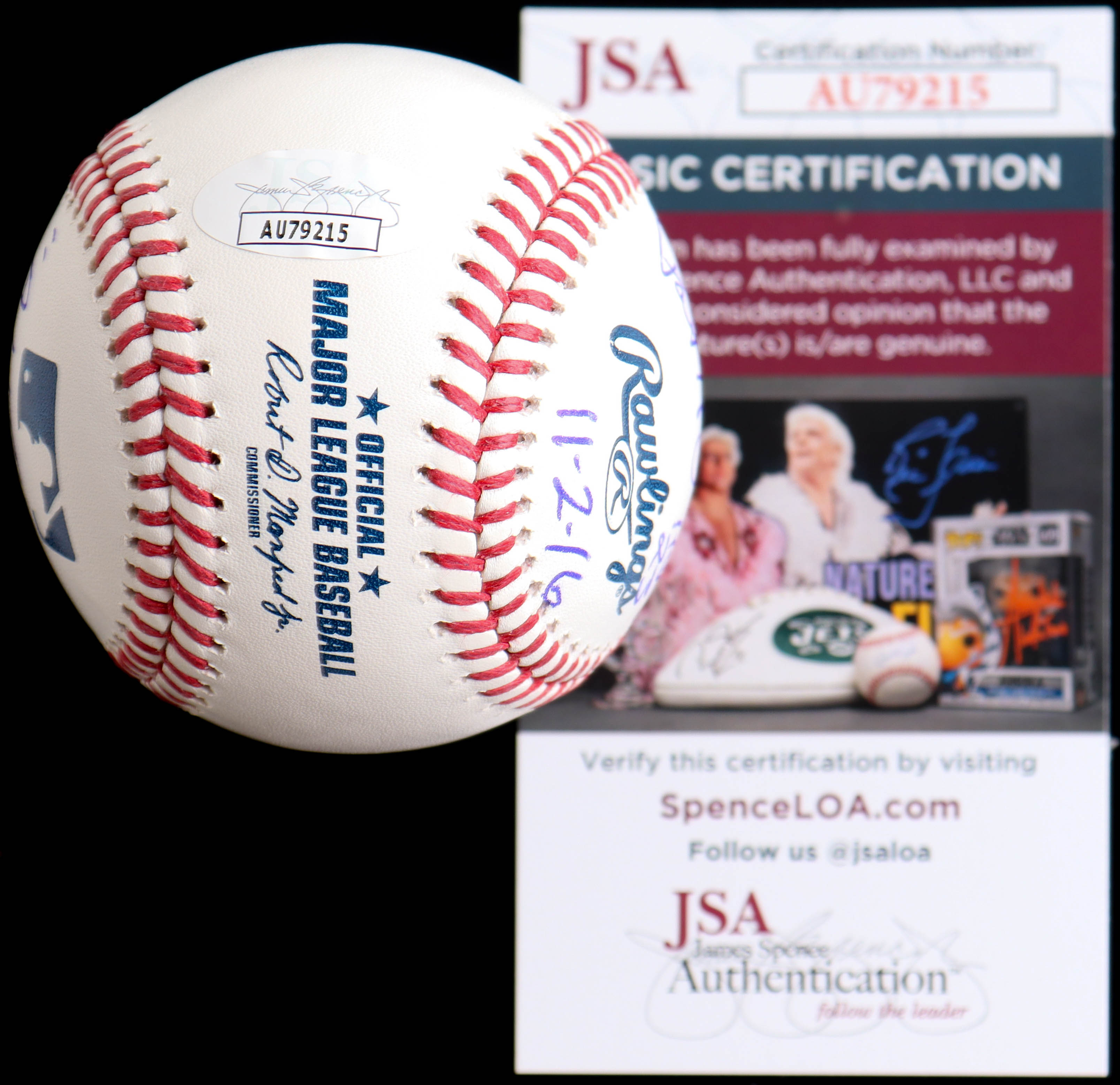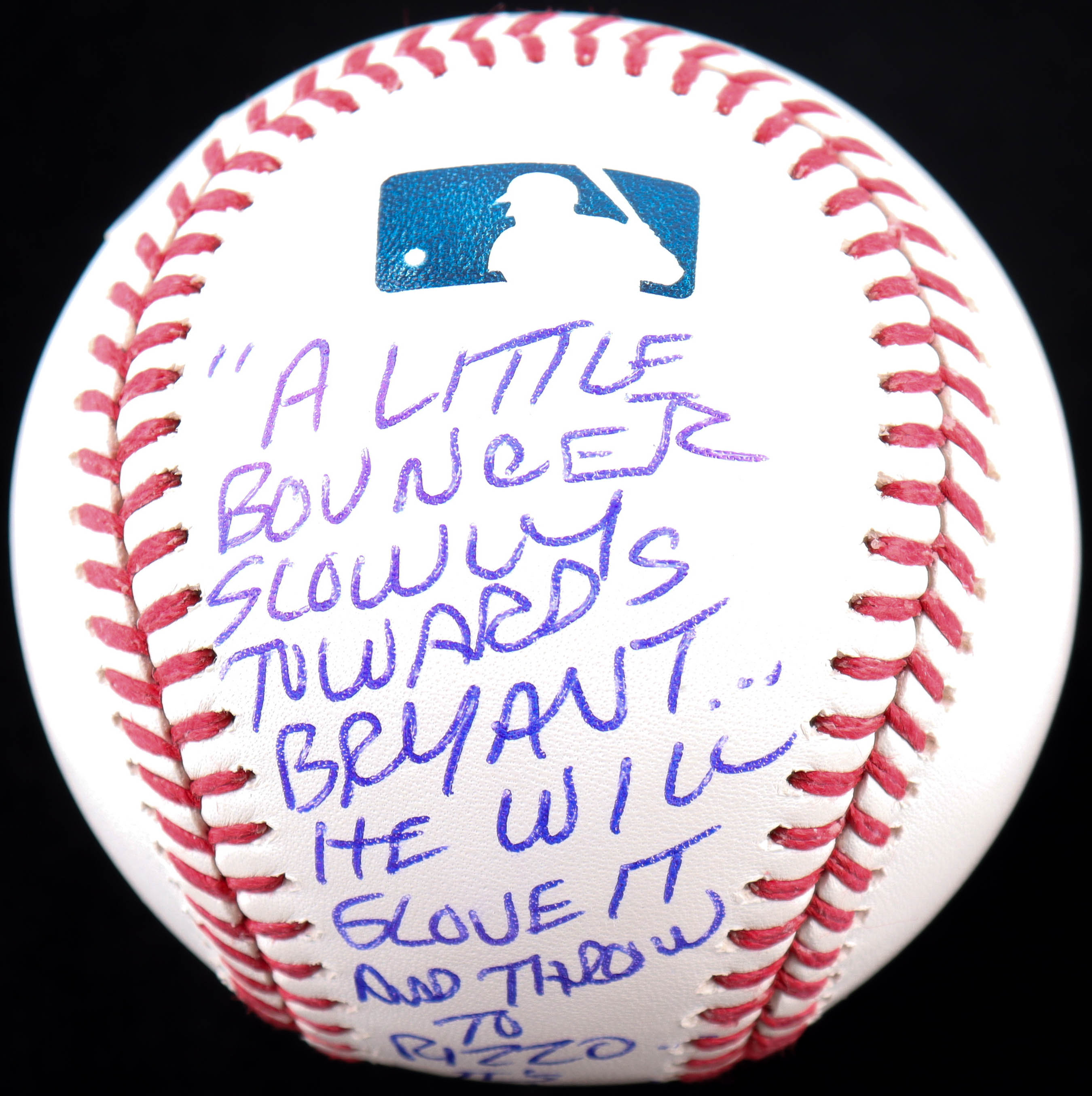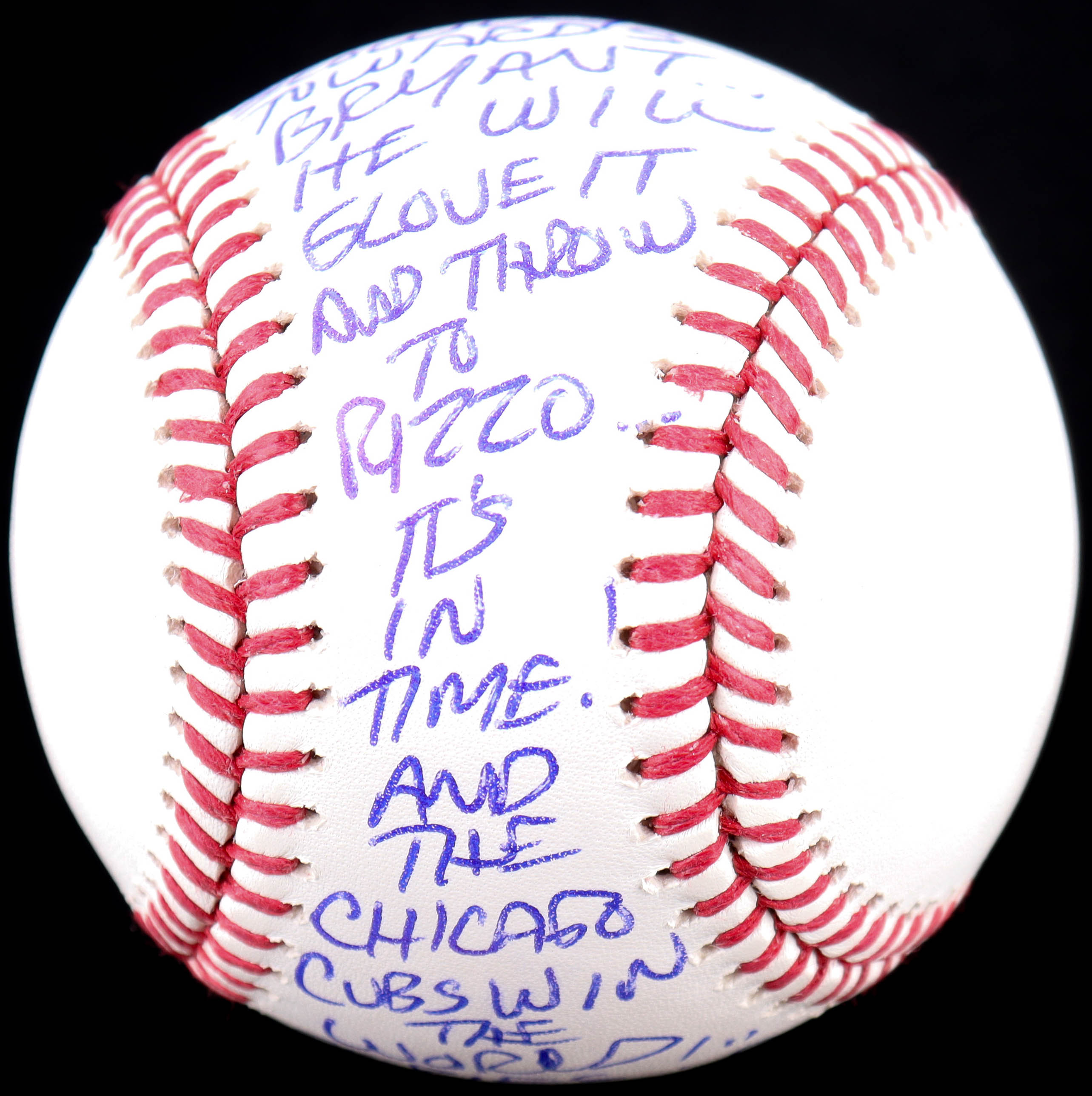 Pat Hughes Signed OML Baseball with Cubs World Series Win Play-By-Play Inscription (JSA)