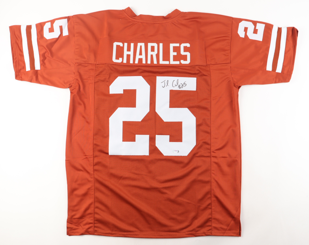 Custom jersey, everything sewn on, size XL, and has been hand-signed by Jamaal Charles.