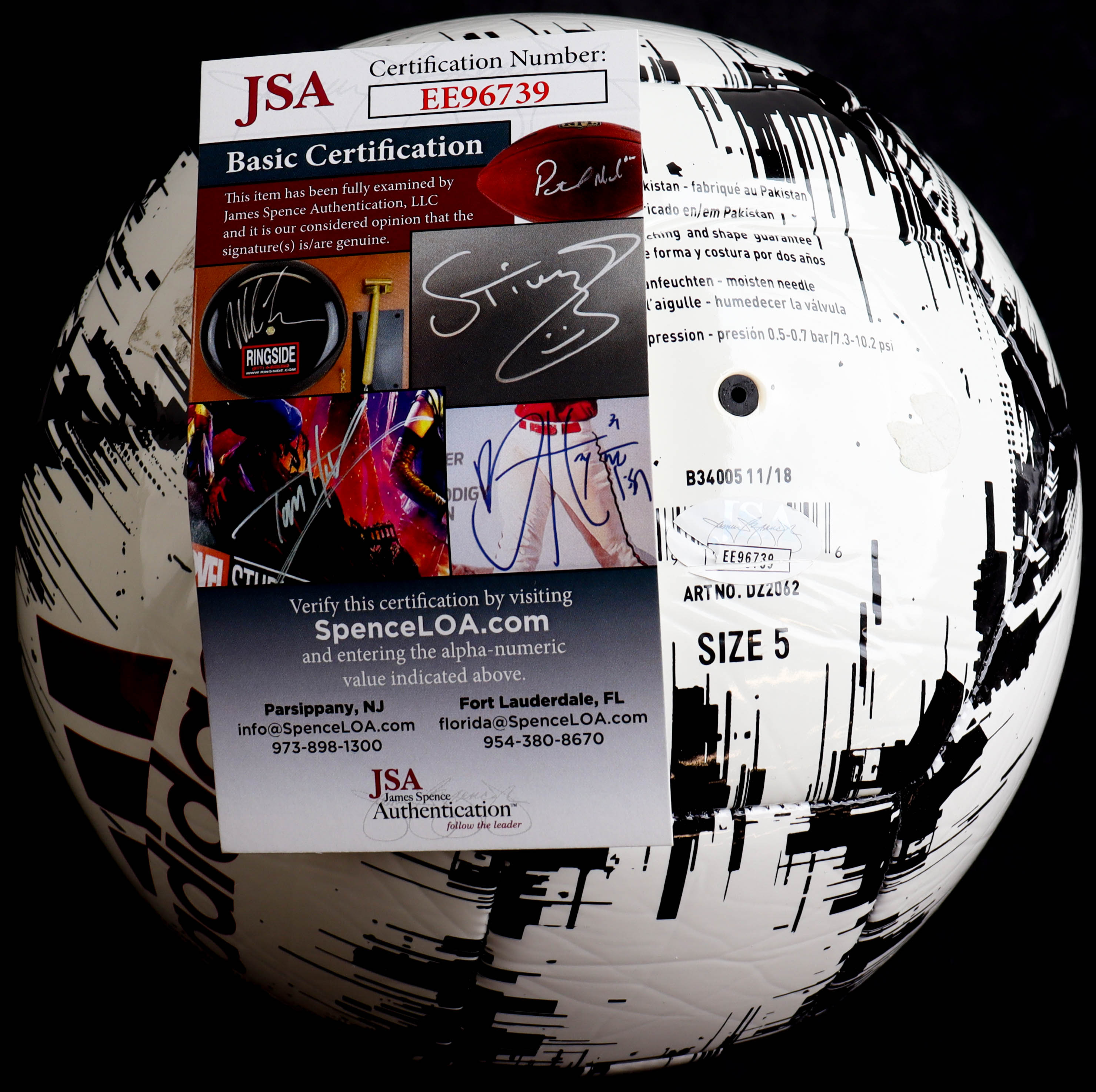 Adidas soccer ball. Hand-signed by Joao Felix (Atletico Madrid). Please note, sticky residue on the ball and damage to the JSA hologram.