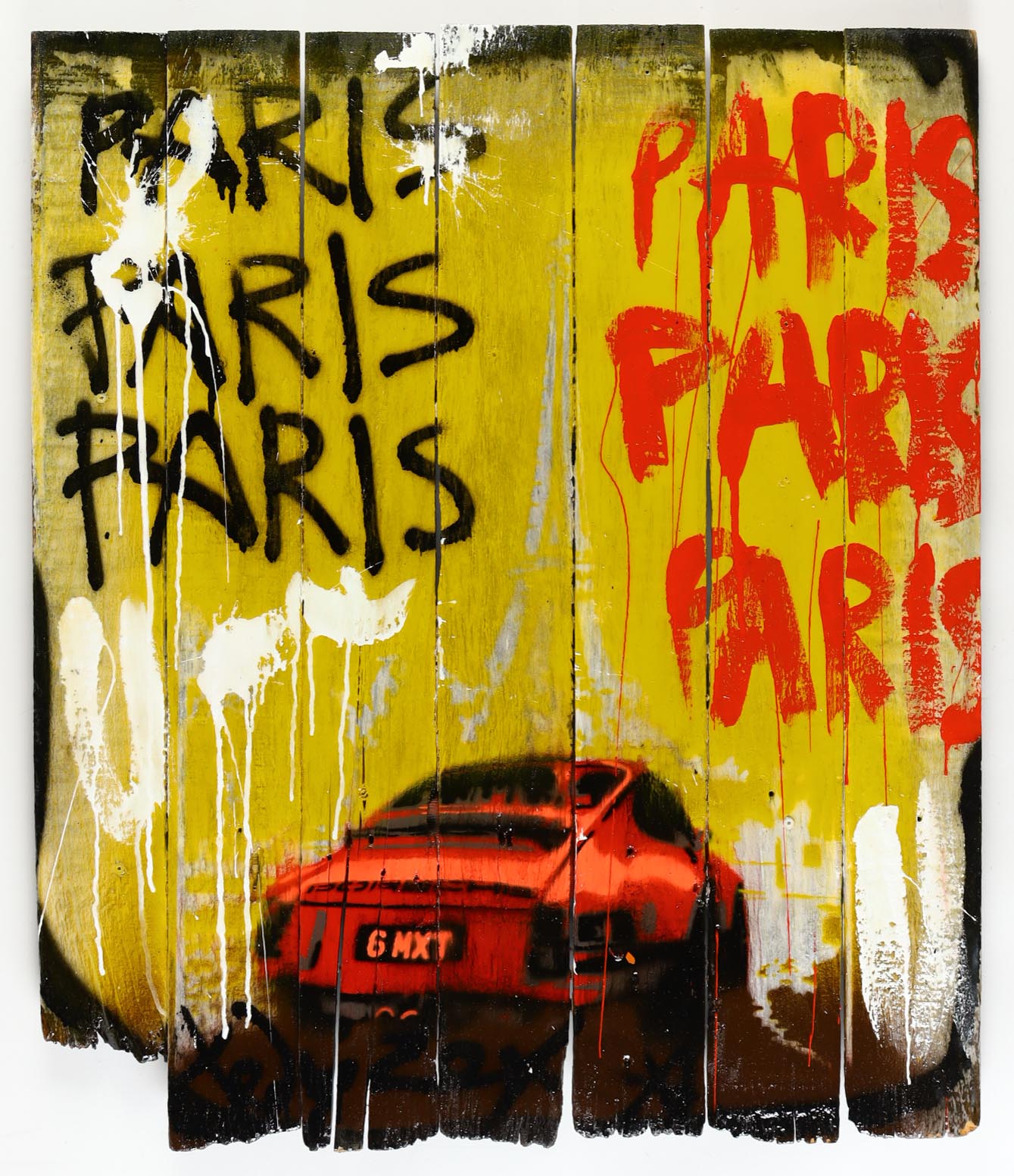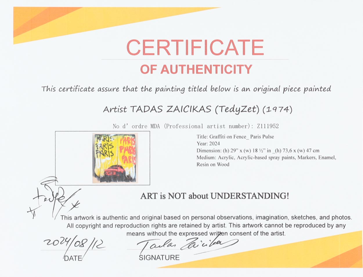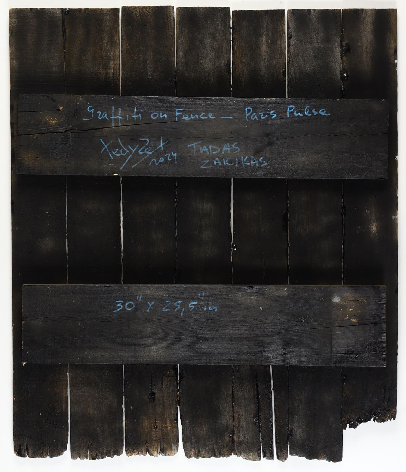 "Graffiti On Fence_ Paris Pulse" 2024 18.5x29 Original Painting on Fence by Tadas Zaicikas (Zaicikas)