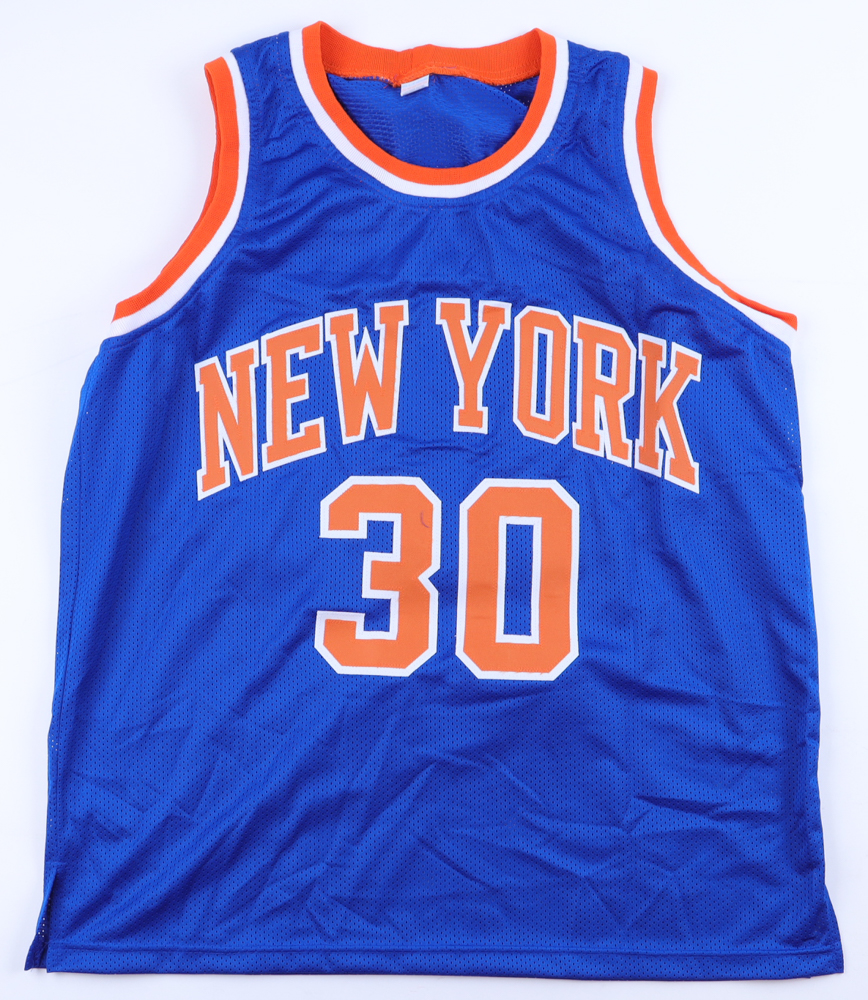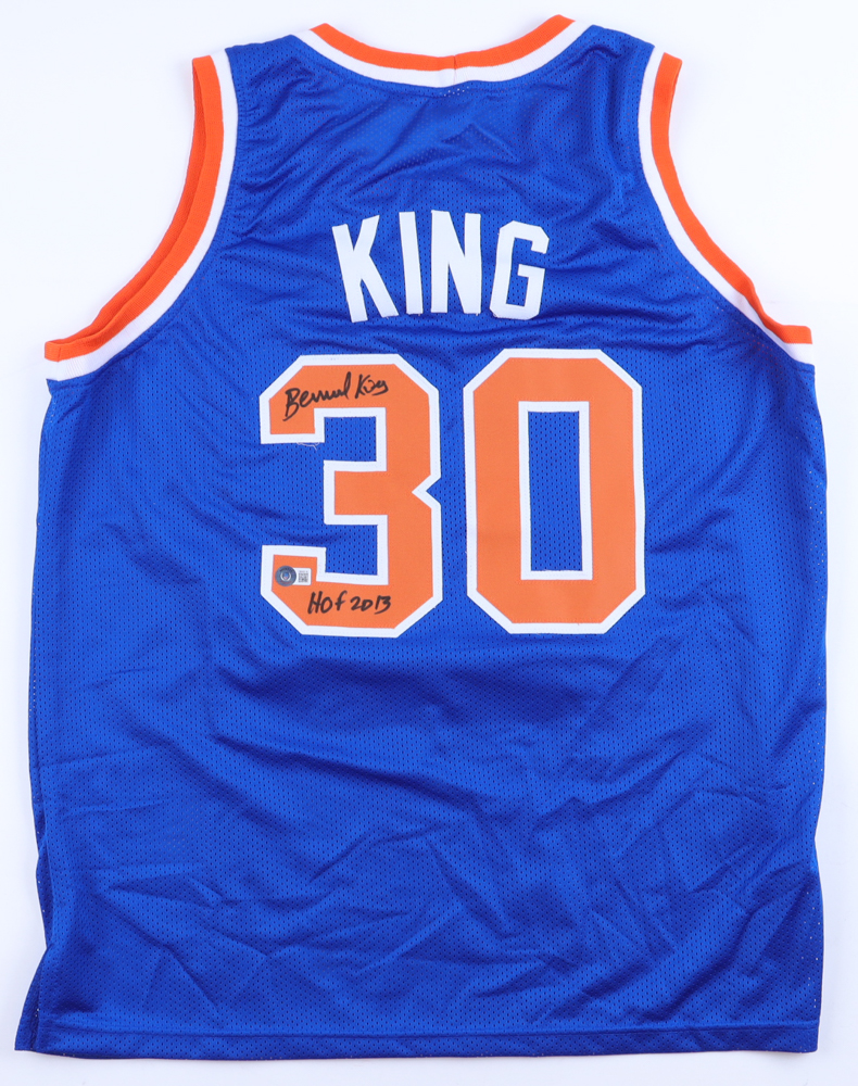 Custom jersey with everything sewn on, size XL. Has been hand-signed and inscribed by Bernard King (HOF).