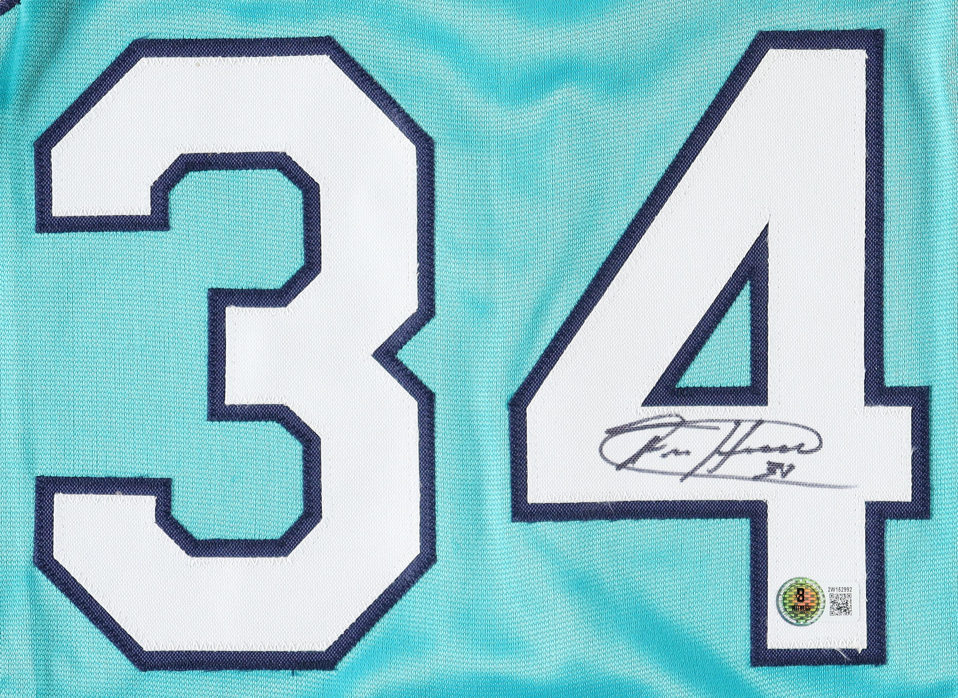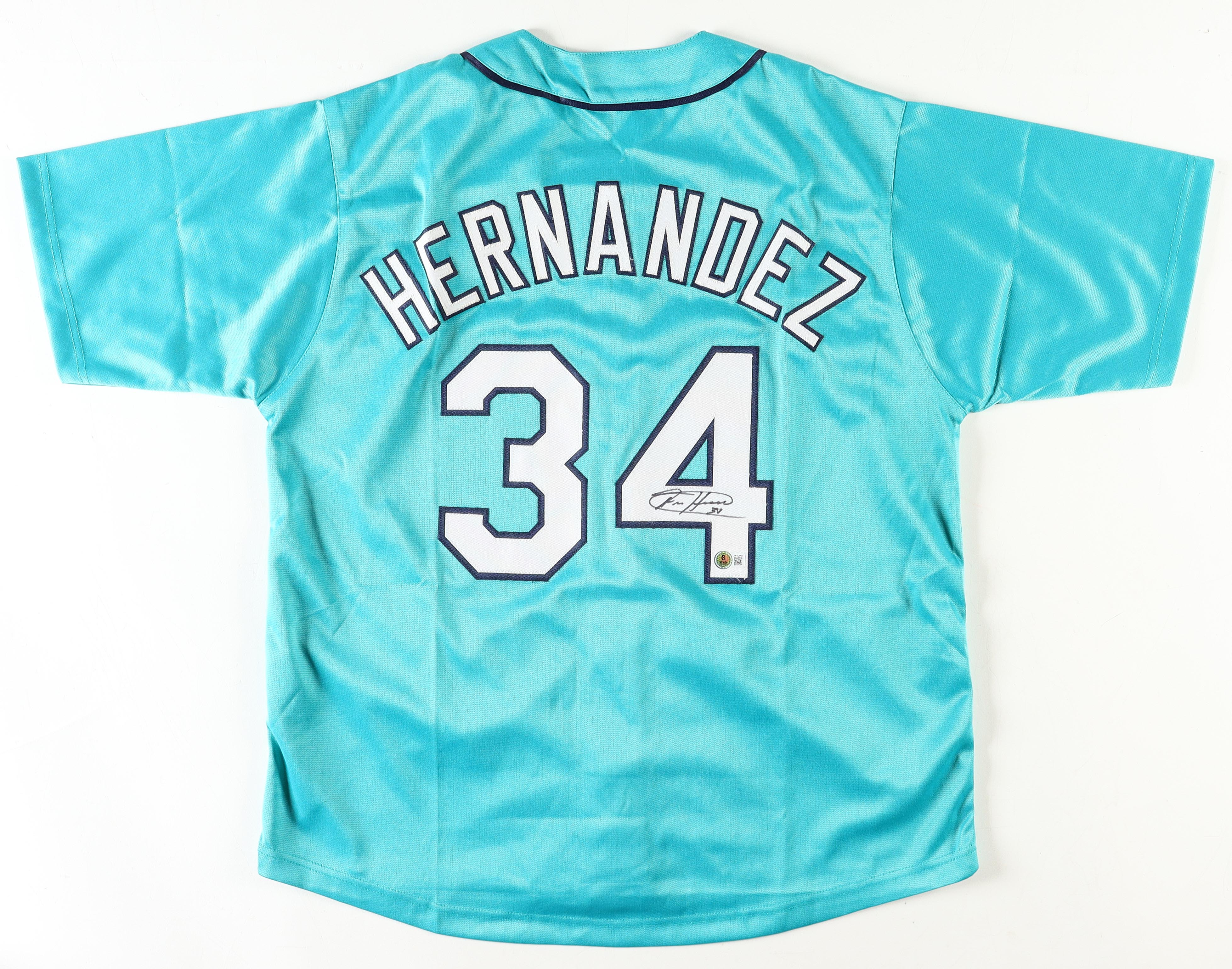 Custom jersey. Everything sewn on, size XL. Hand-signed by Felix Hernandez.
