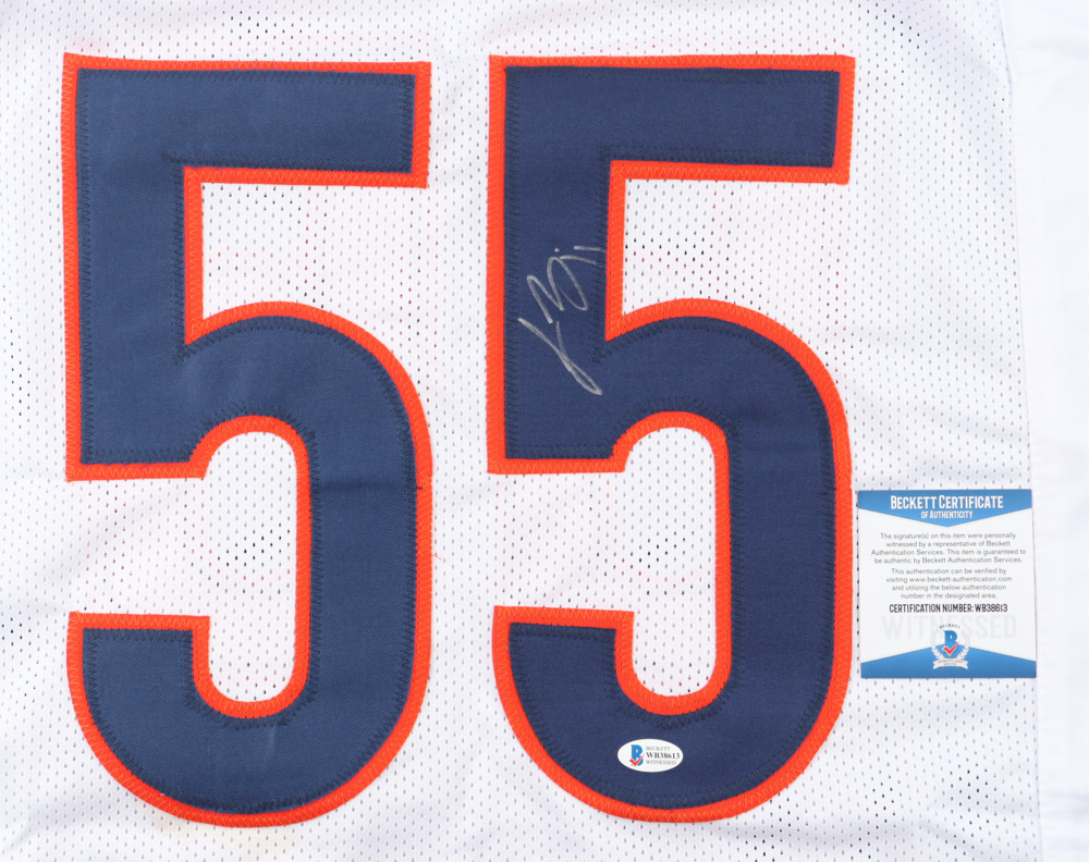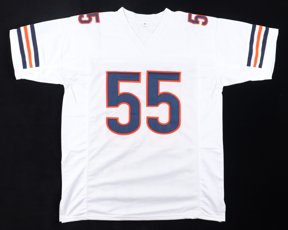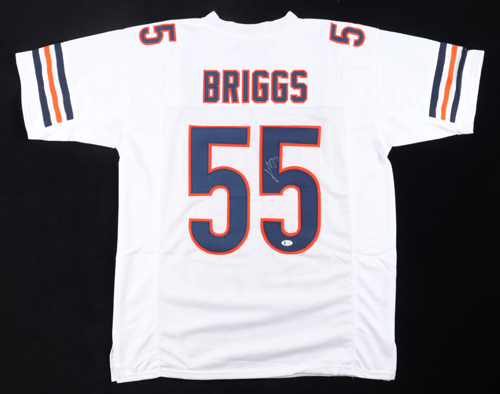Custom football jersey. Everything sewn on, size XL. Hand-signed by Lance Briggs.