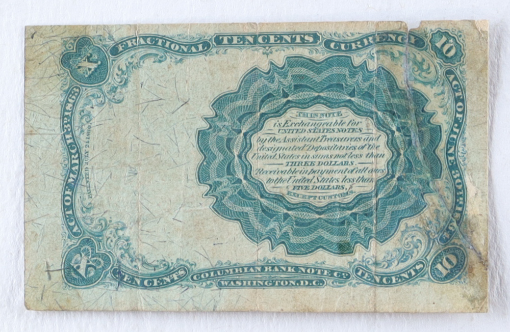 1874 U.S. .10¢ Fractional Currency Note, 5th Issue Red Seal / Short Key - Treasury Secretary William Meredith