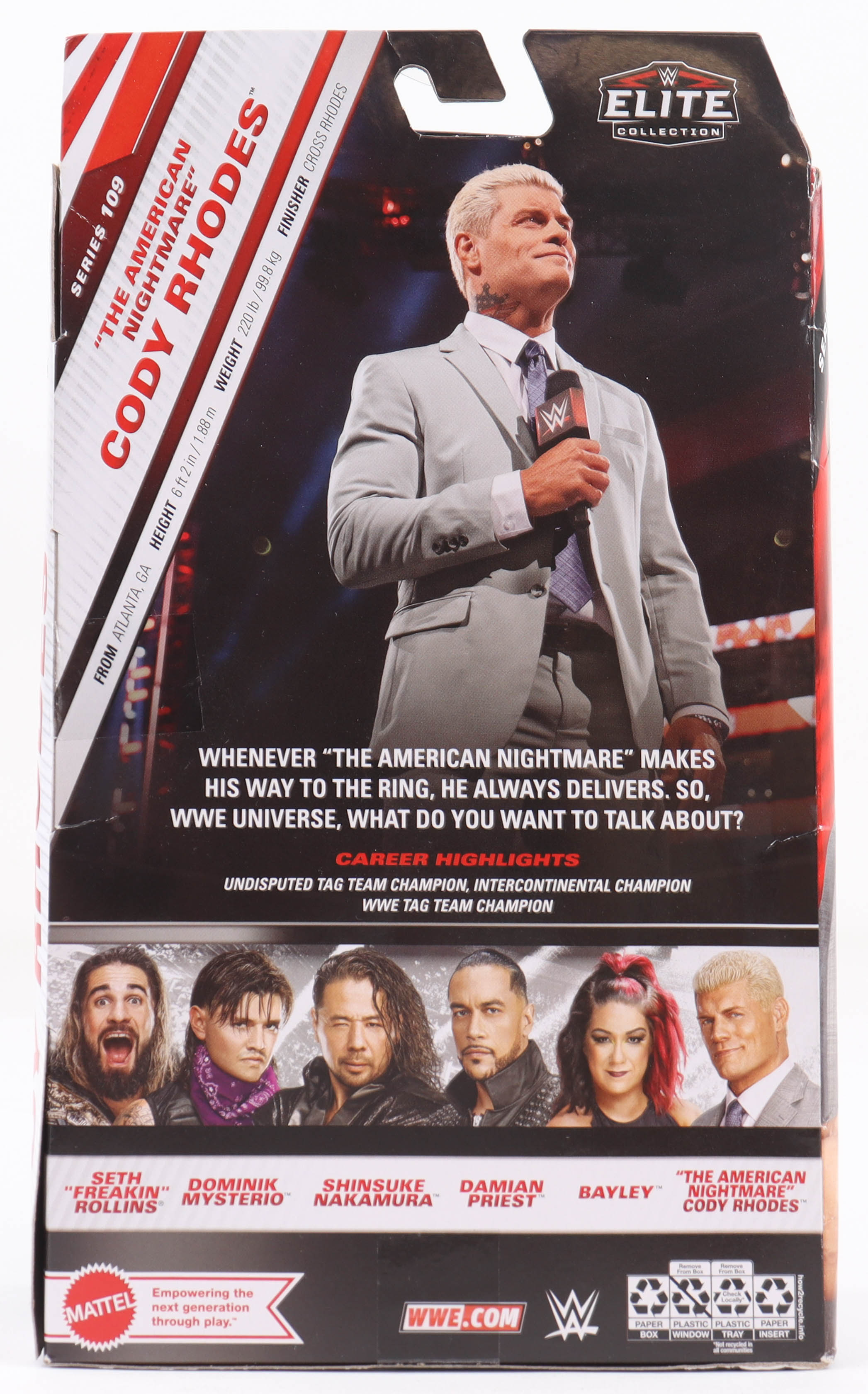 WWE Elite Collection Wrestling action figure. Hand-signed on the original packaging by Cody Rhodes. Please note there are damages to the packaging, see photos for more details.