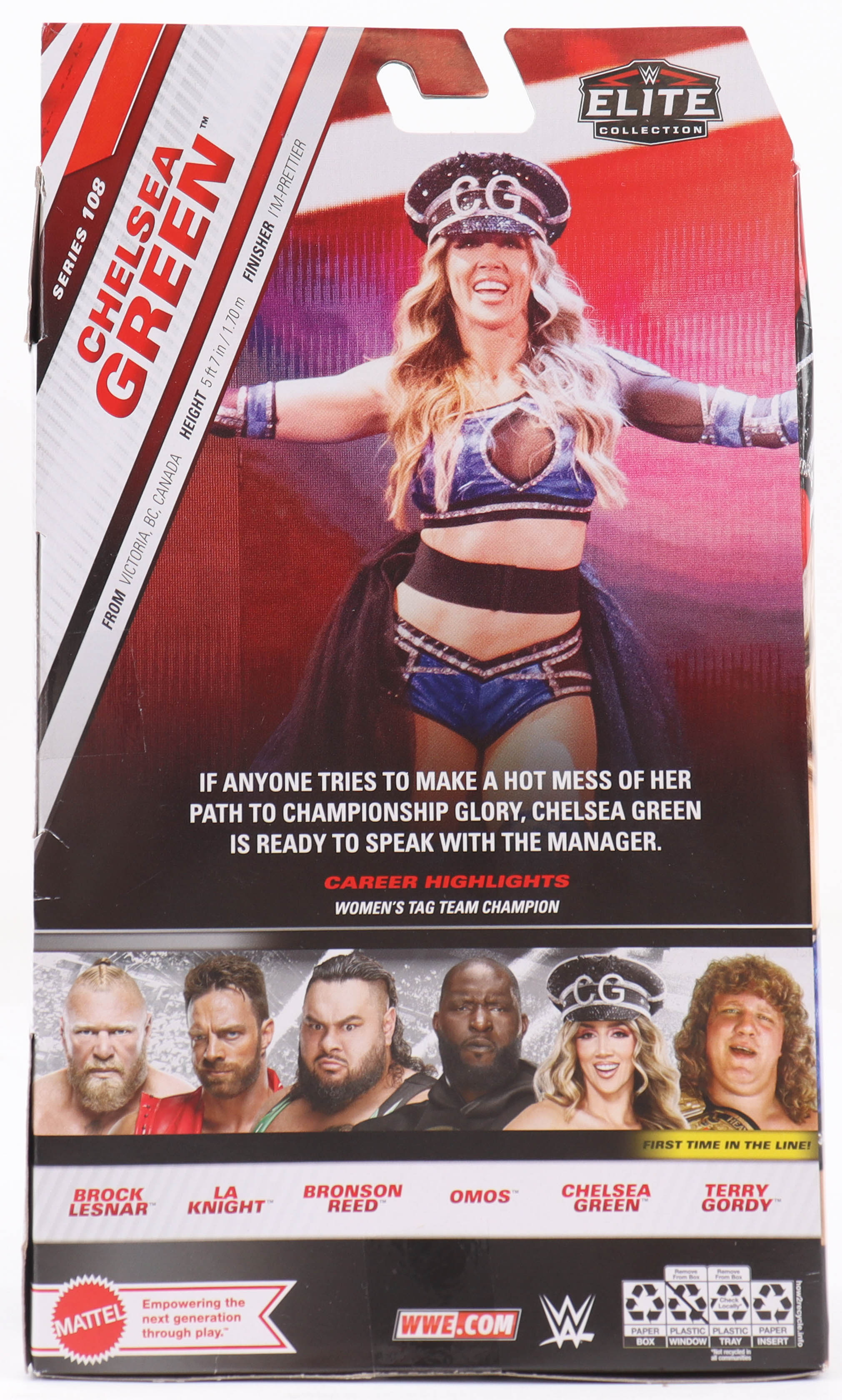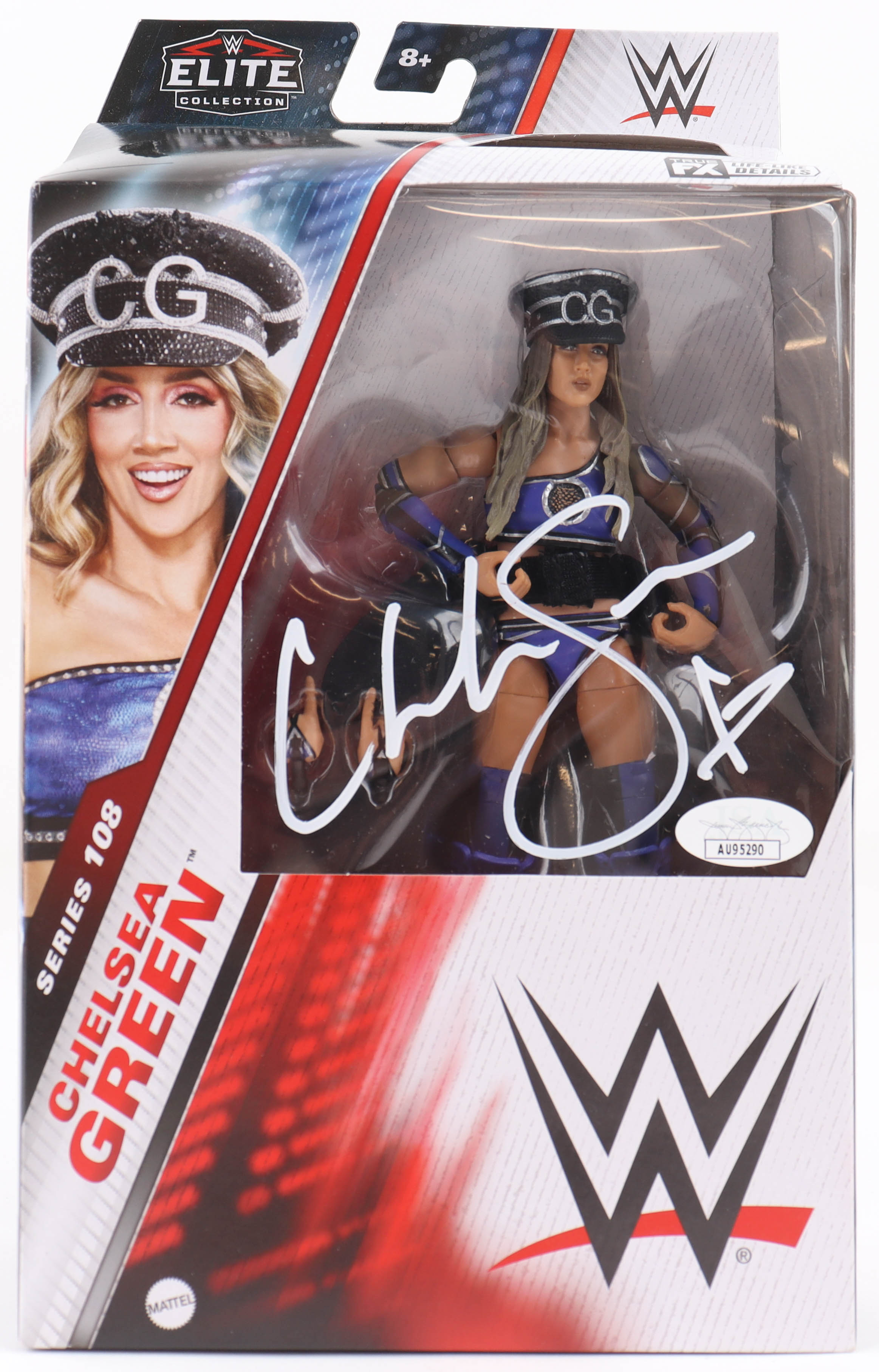 WWE Elite Collection Wrestling action figure. Hand-signed on the original packaging by Chelsea Green. Please note there are damages to the packaging, see photos for more details.