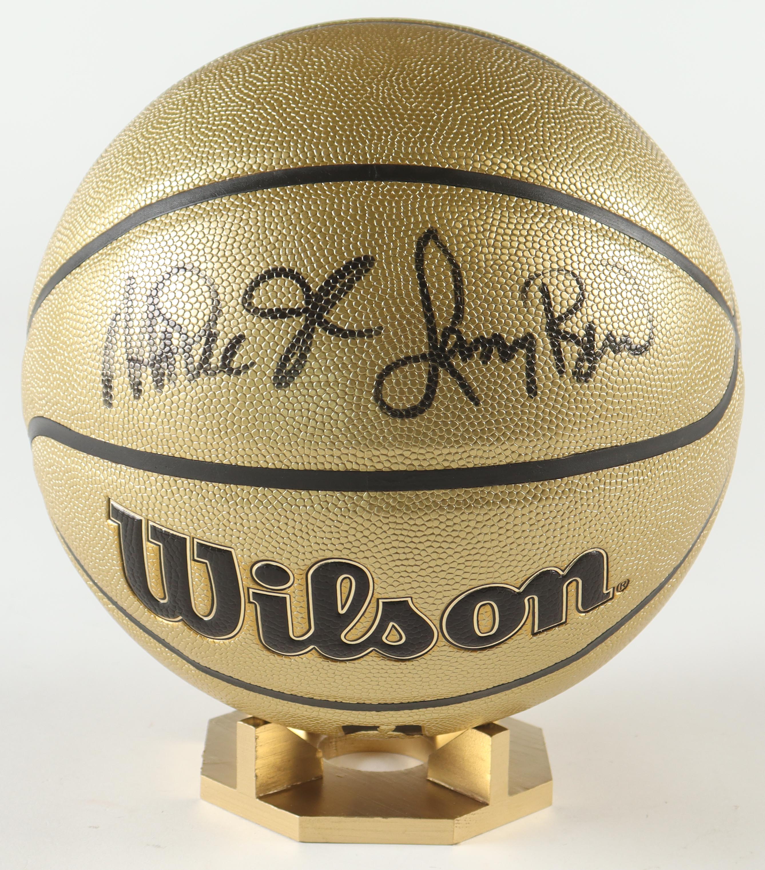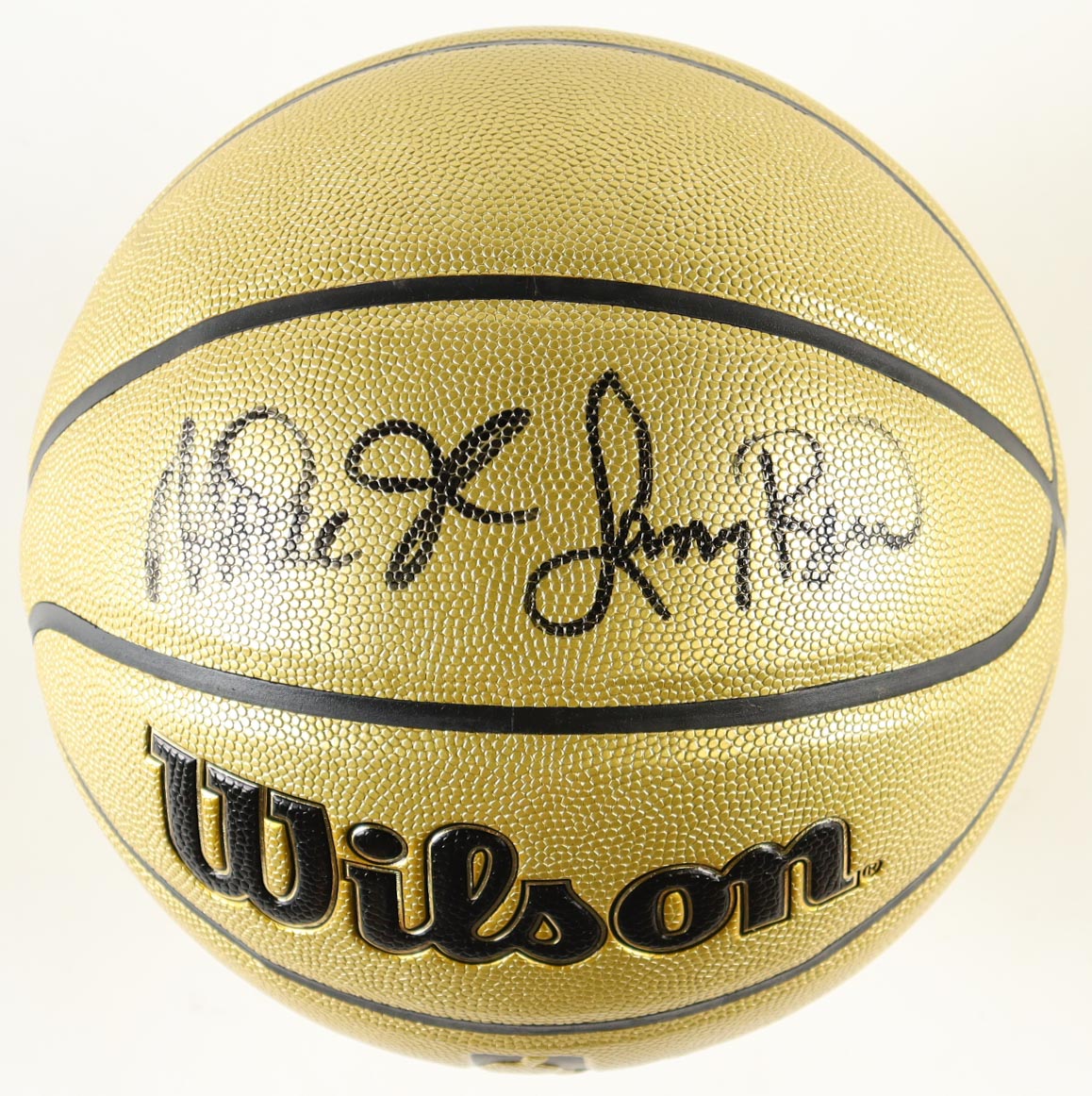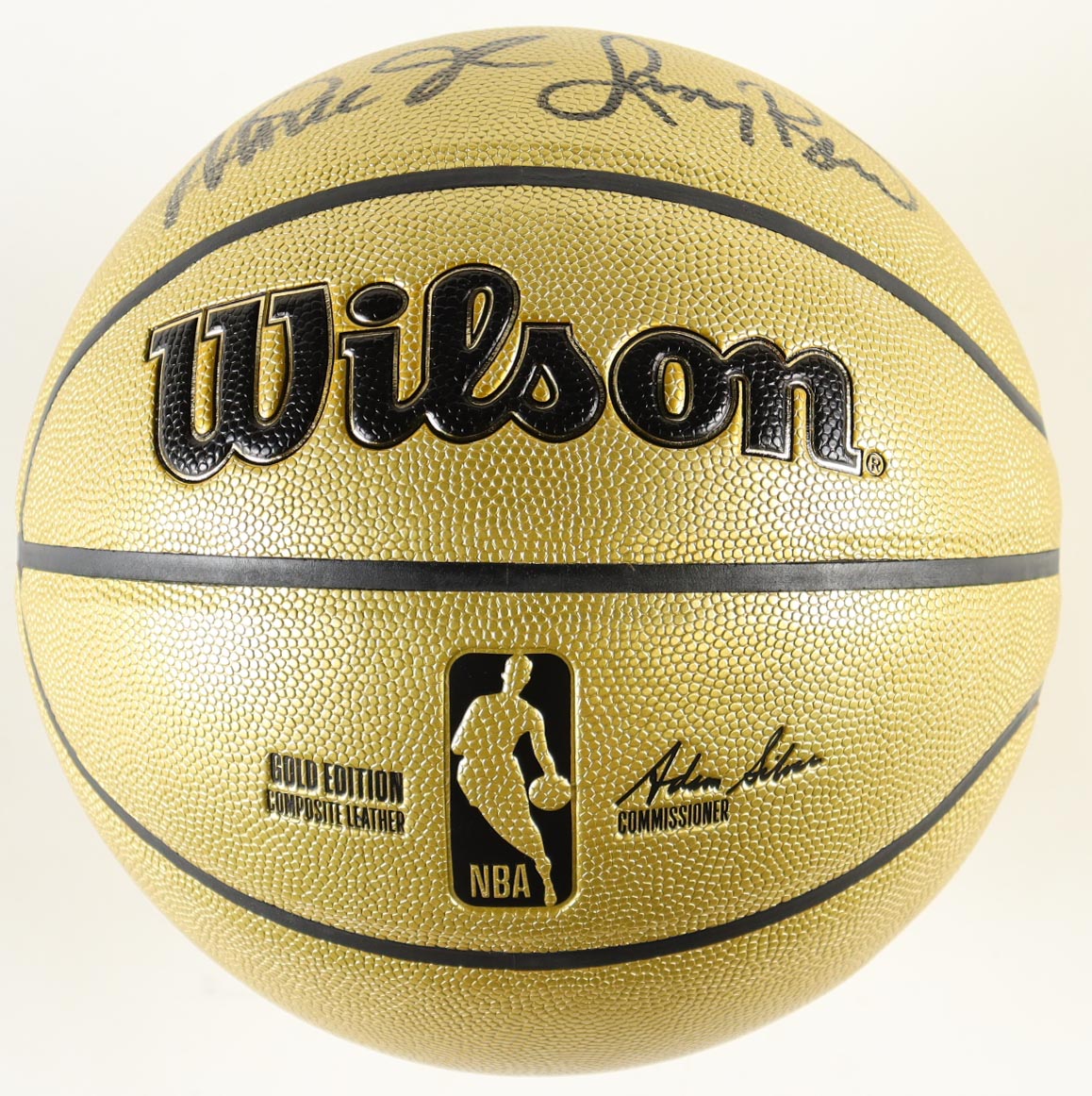 Wilson Gold Edition Composite Leather basketball. Hand-signed by Magic Johnson (Los Angeles Lakers, HOF) and Larry Bird (Boston Celtics, HOF).