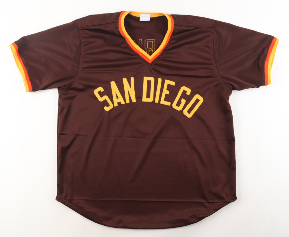 Custom jersey with everything sewn on, size XL. Hand-signed by Steve Garvey. Please note, there is a stay nk mark near the signature.