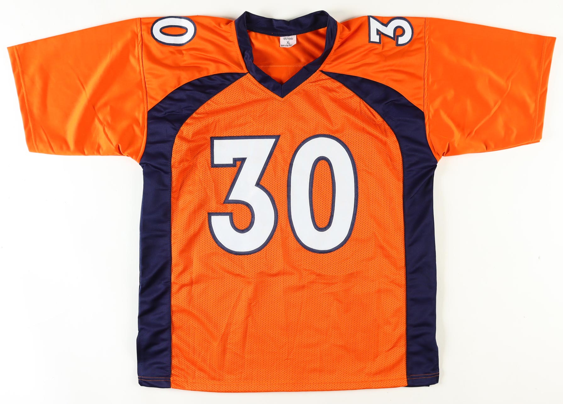 Custom jersey. Everything is sewn on, size XL. Has been hand-signed by Terrell Davis (HOF).
