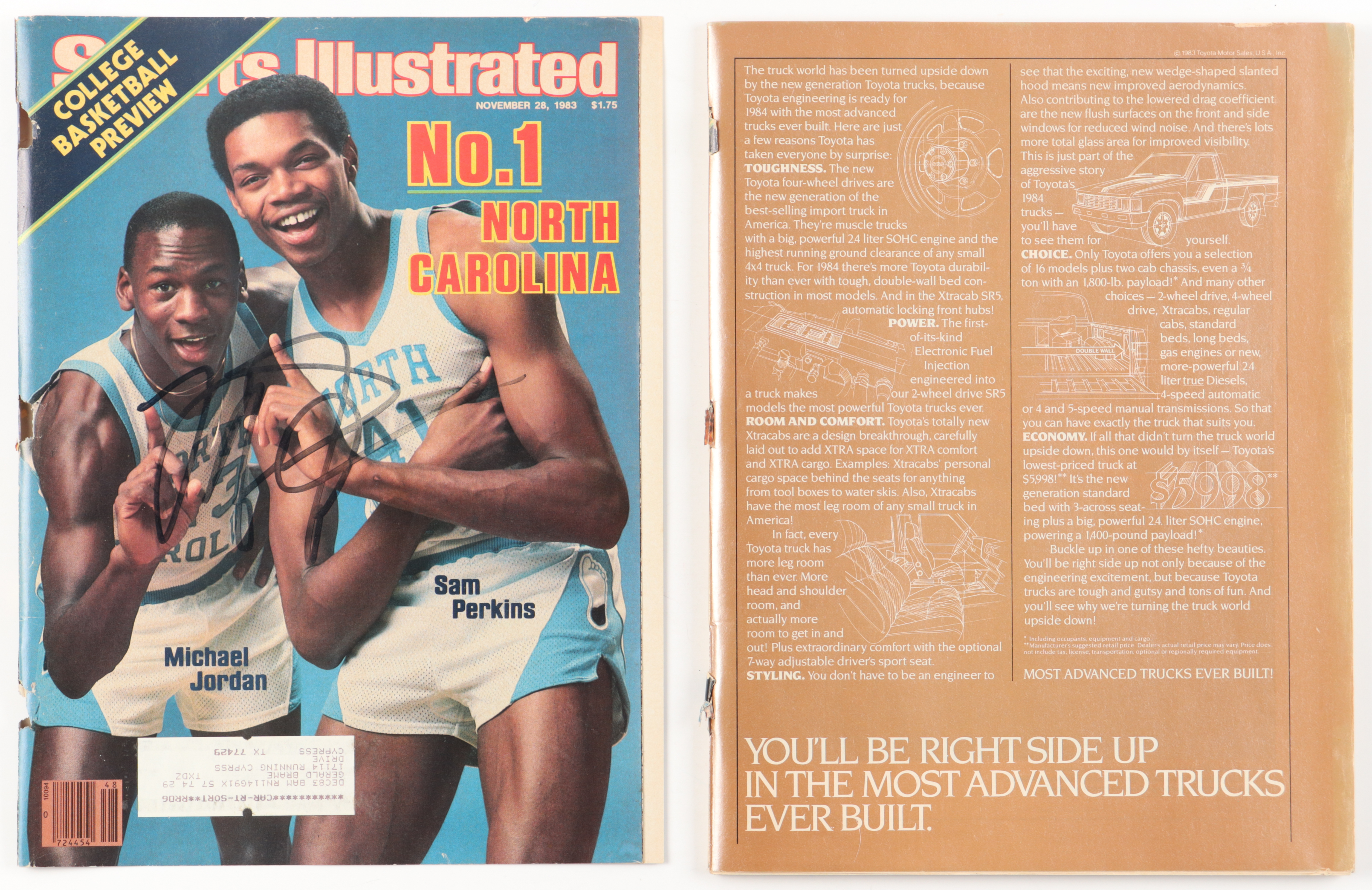 November 28th, 1983 "Sports Illustrated" issue magazine cover page has been hand-signed by basketball legend, Michael Jordan! Please note, the cover of the magazine is not attached to the rest of the magazine. Both the cover and the magazine have small tears from detachment.