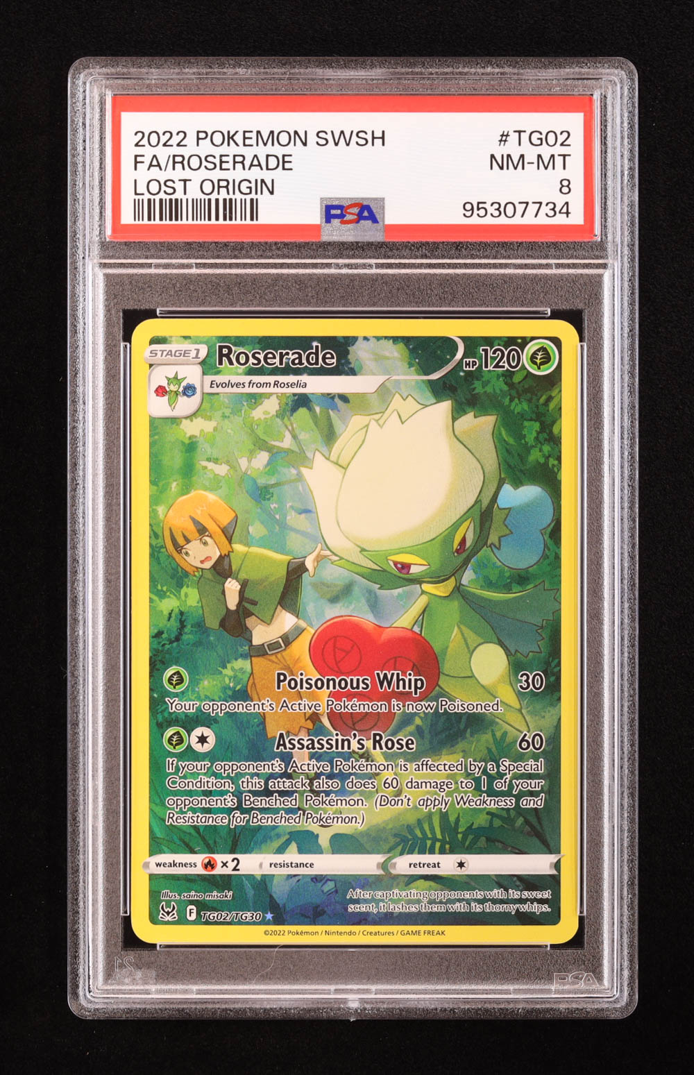 Roserade 2022 Pokemon Sword and Shield Lost Origin Trainer Gallery #TG02 (PSA 8)