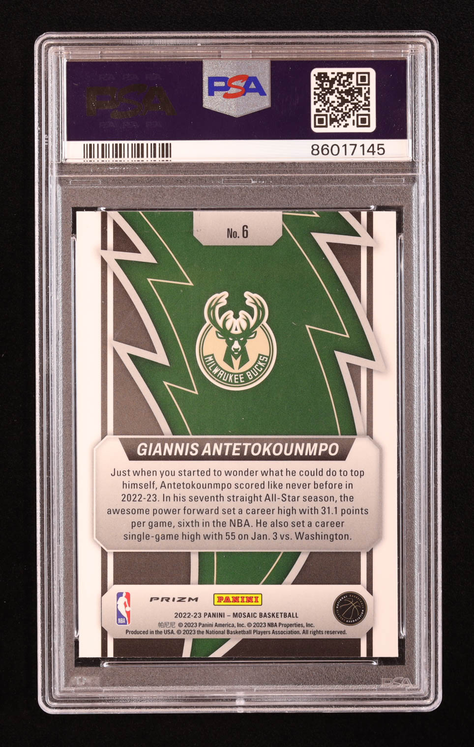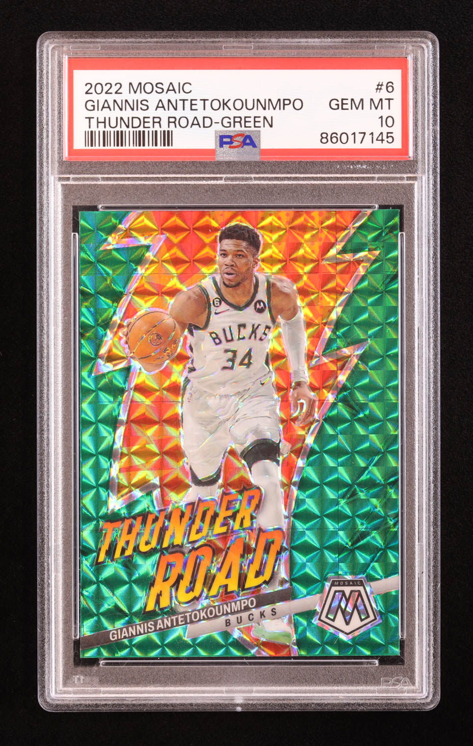 Giannis Antetokounmpo 2022-23 Panini Mosaic Thunder Road Mosaic Green #3 (PSA 10)
