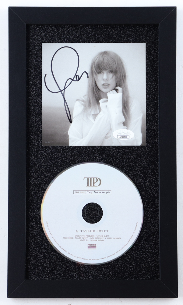 Custom frame measures approximately 8" x 13.5" in size. Features a "The Torture Poets Department" CD insert that has been hand-signed by Taylor Swift and includes the disc as shown.