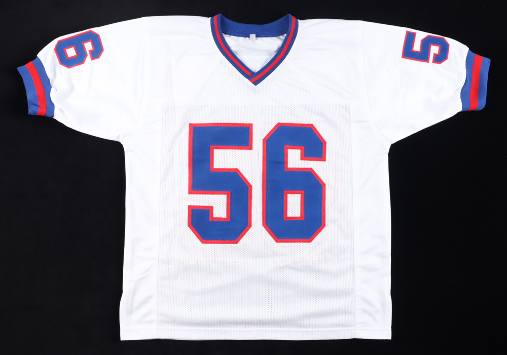 Custom jersey. Everything sewn on, size L. Hand-signed and inscribed by Lawrence Taylor (HOF).
