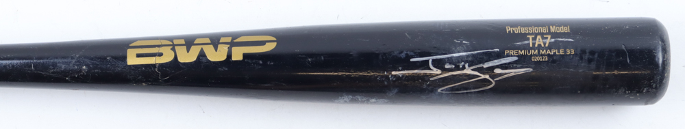 BWP baseball bat. Hand-signed by Jonny Gomes (Tampa Bay Rays). Please note, the bat has been game-used and cracked by an unknown player.