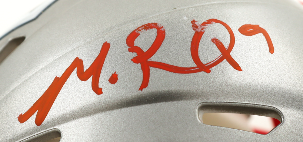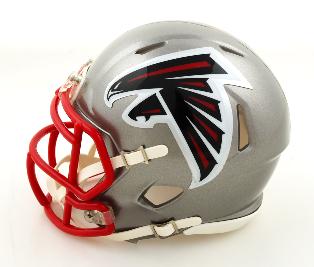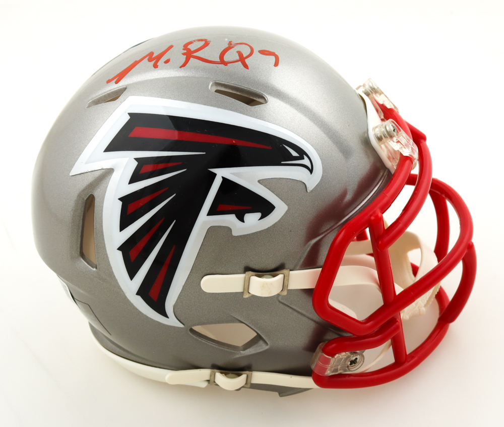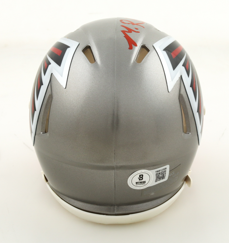 Riddell Atlanta Falcons flash alternate speed mini helmet has been hand-signed by Michael Penix Jr. Please note the signature has been smudged.