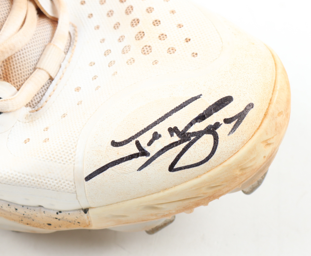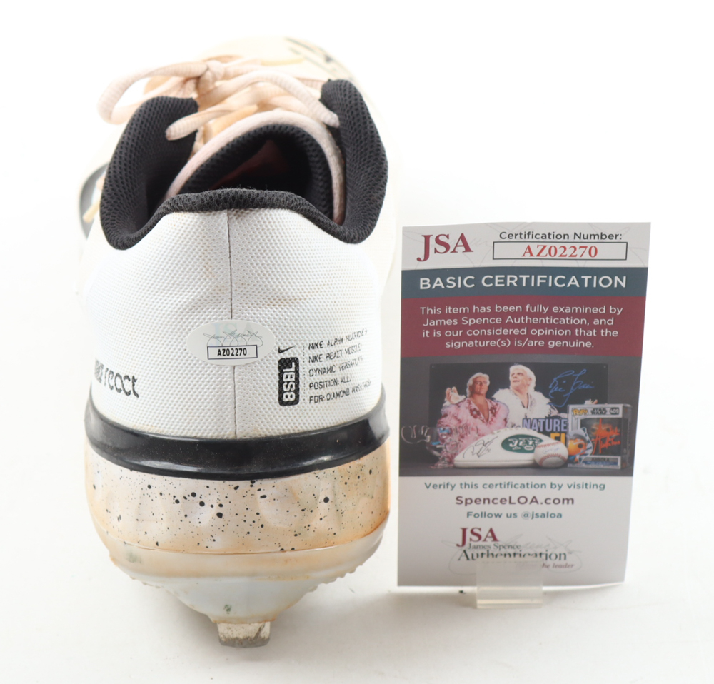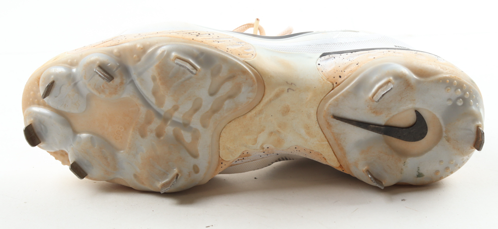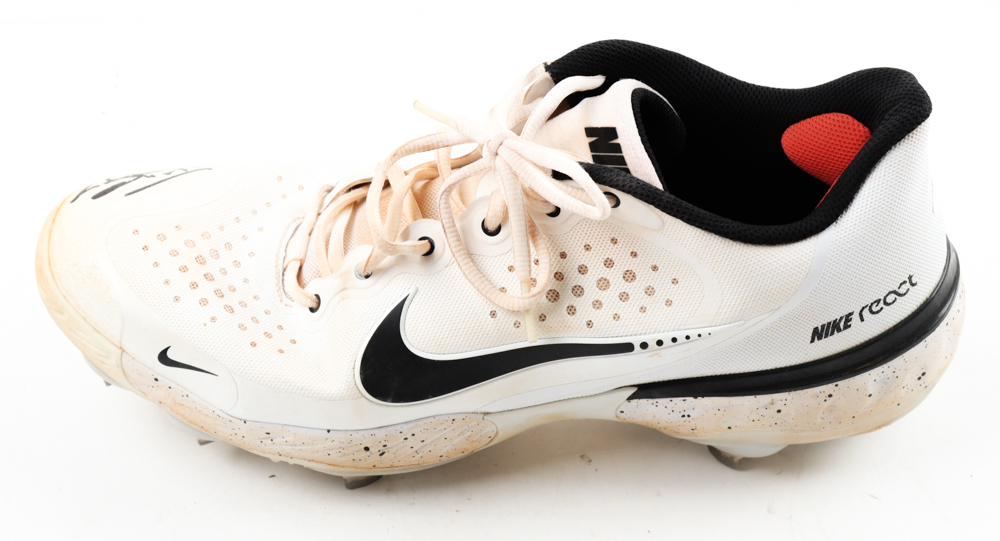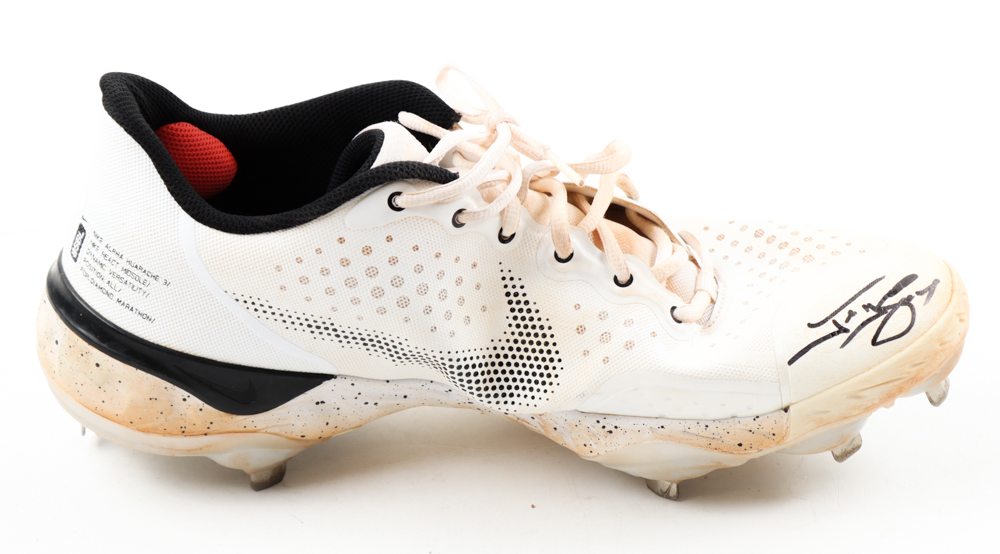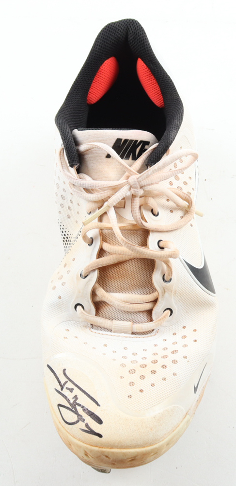 Nike baseball cleat, size 13. Hand-signed by Jonny Gomes (Tampa Bay Rays). Please note, there is scuffing and staining on the cleat and has been game-used by an unknown player.