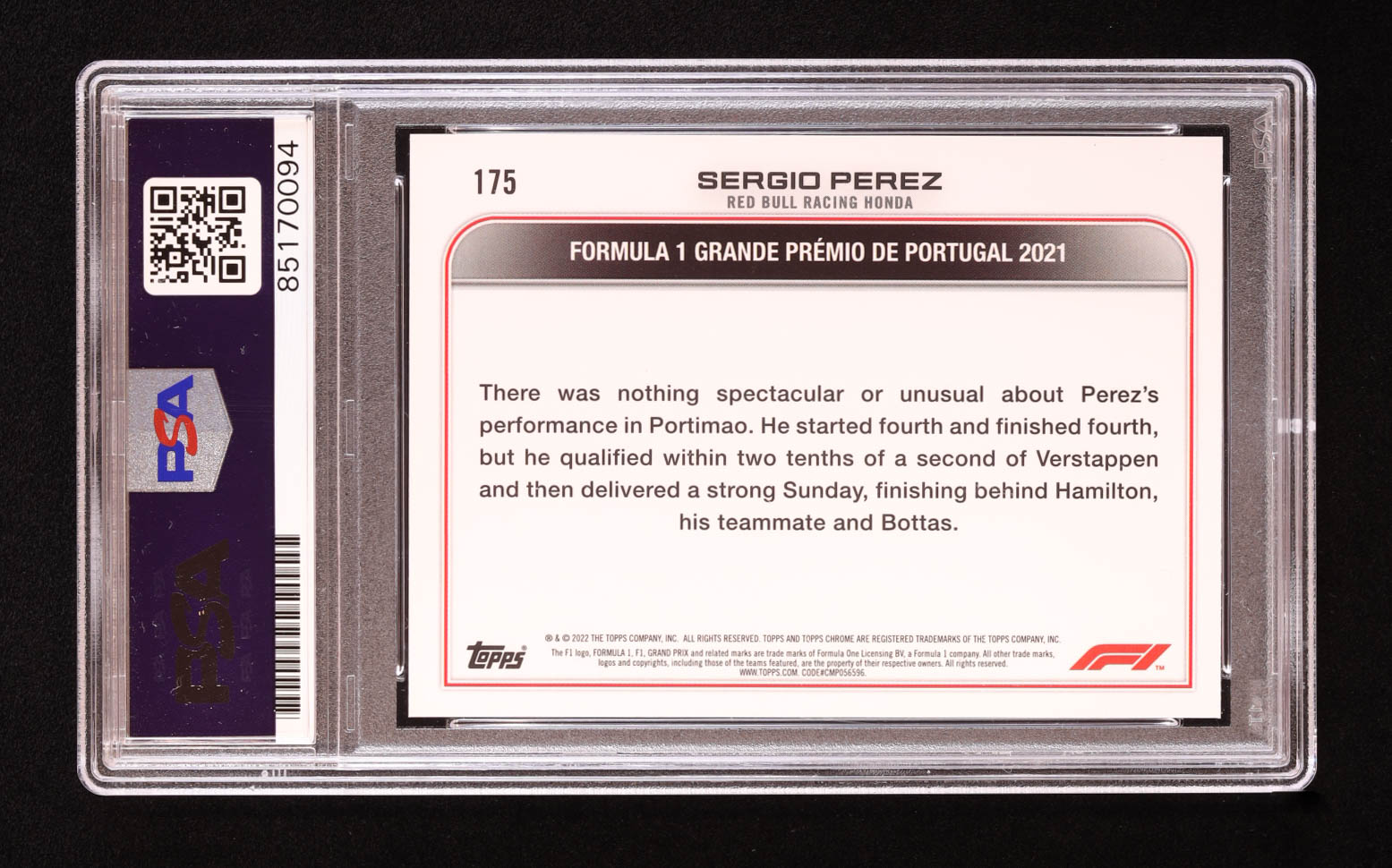 Sergio Perez 2022 Topps Chrome Formula 1 #175 DOD (PSA)