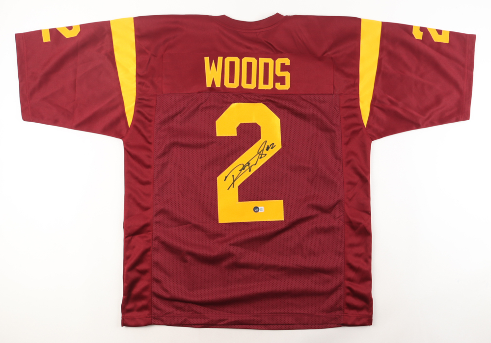 Custom jersey. Everything is sewn on, size L. Hand-signed by Robert Woods. Please note, the signature has bled.