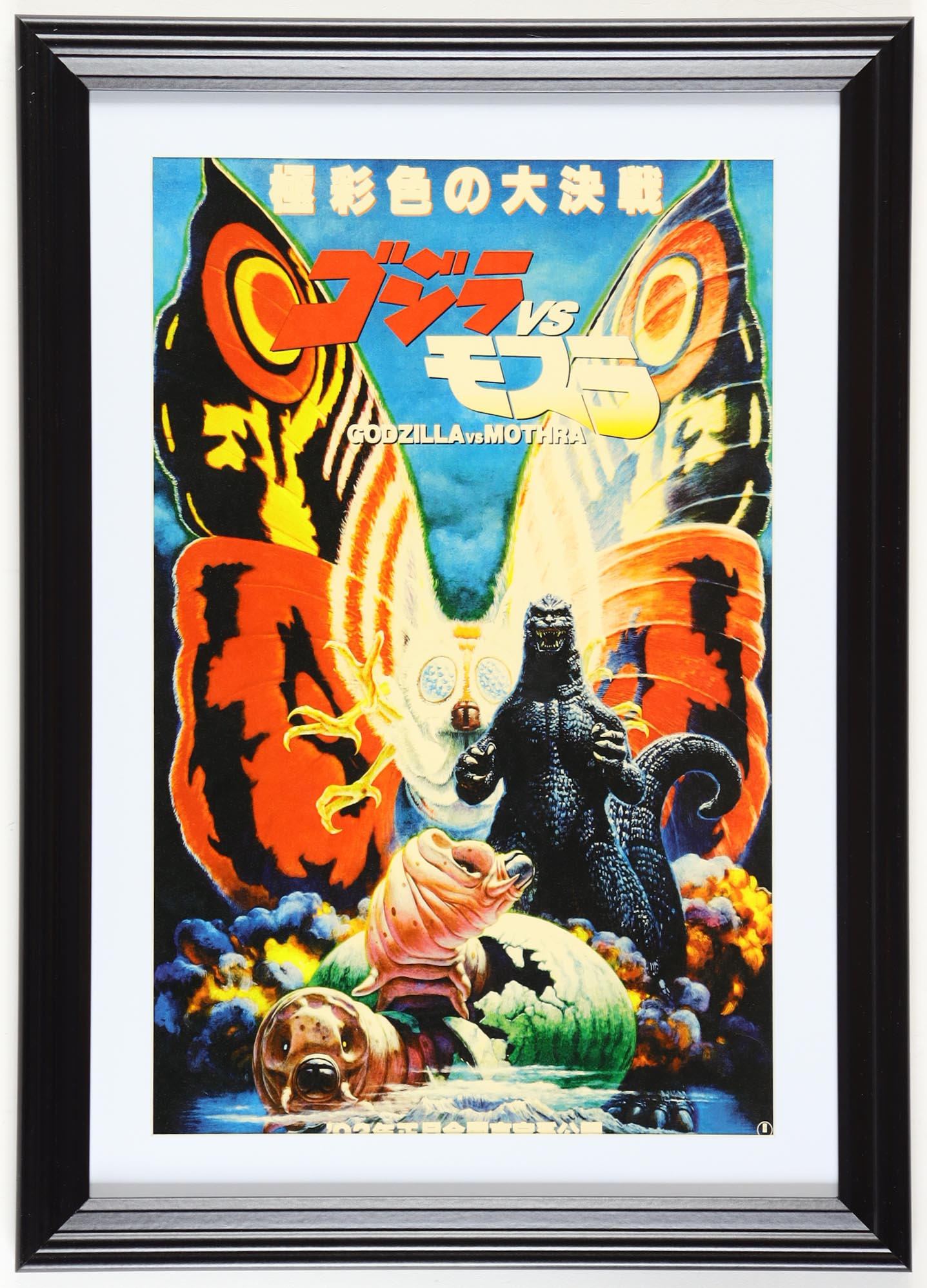 Custom frame measures 15" x 21" in size and features a vintage 1992 "Godzilla vs. Mothra" Japanese print.