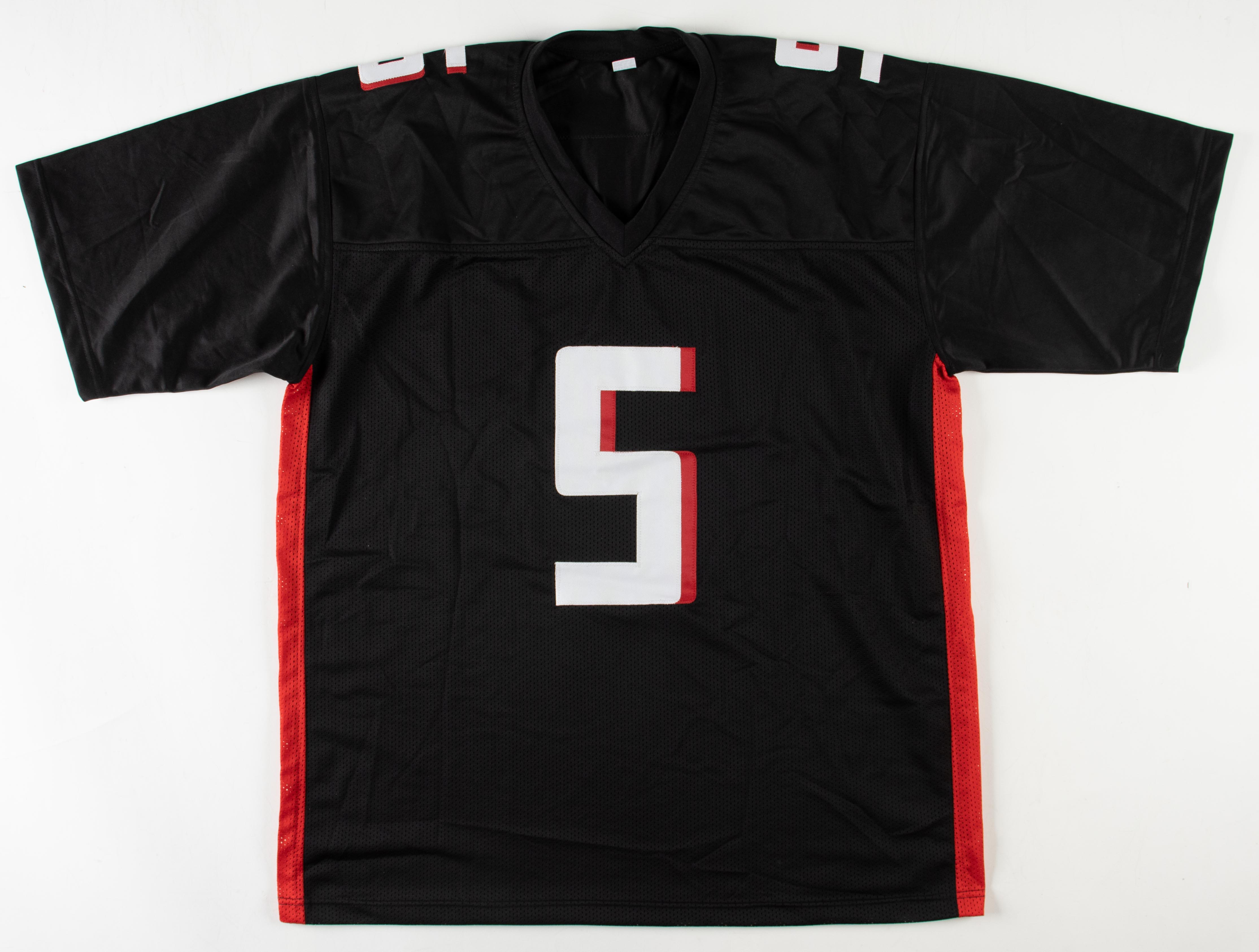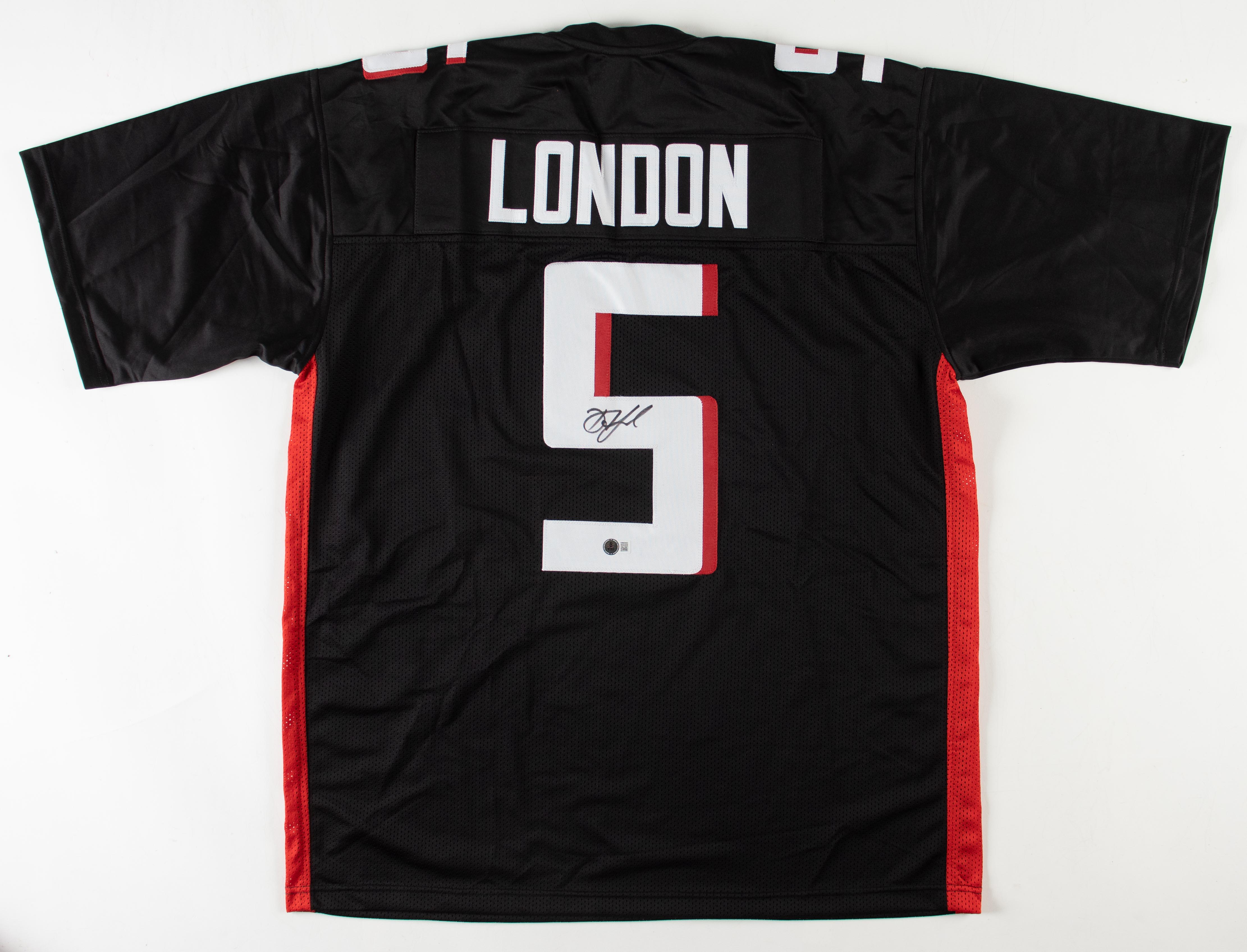 Custom jersey is size XL, everything is sewn on, and has been hand-signed by Drake London.