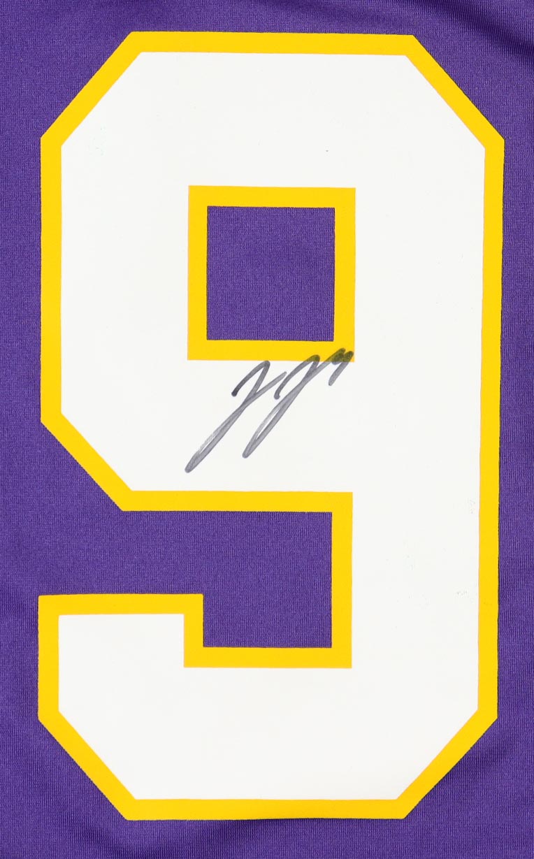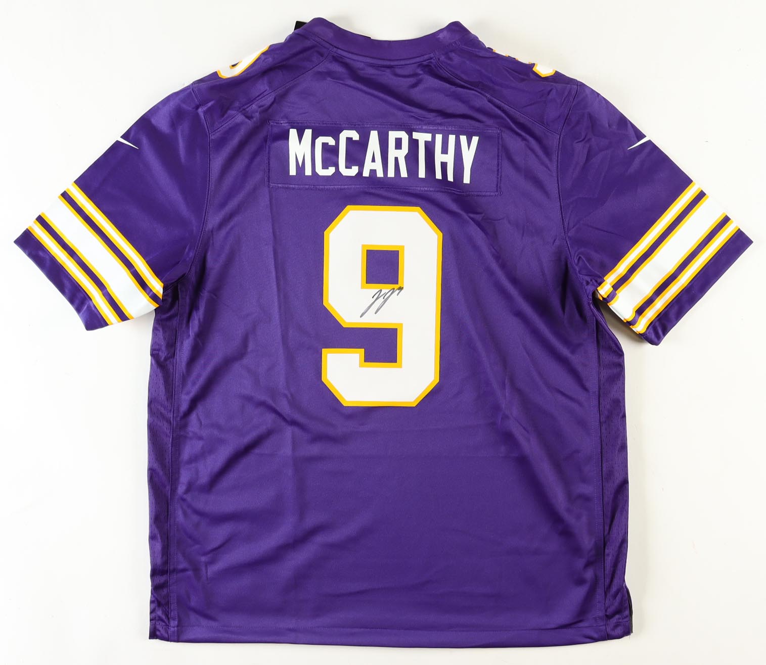 Jersey with everything sewn on, size XL. Hand-signed by J.J. McCarthy (Minnesota Vikings).