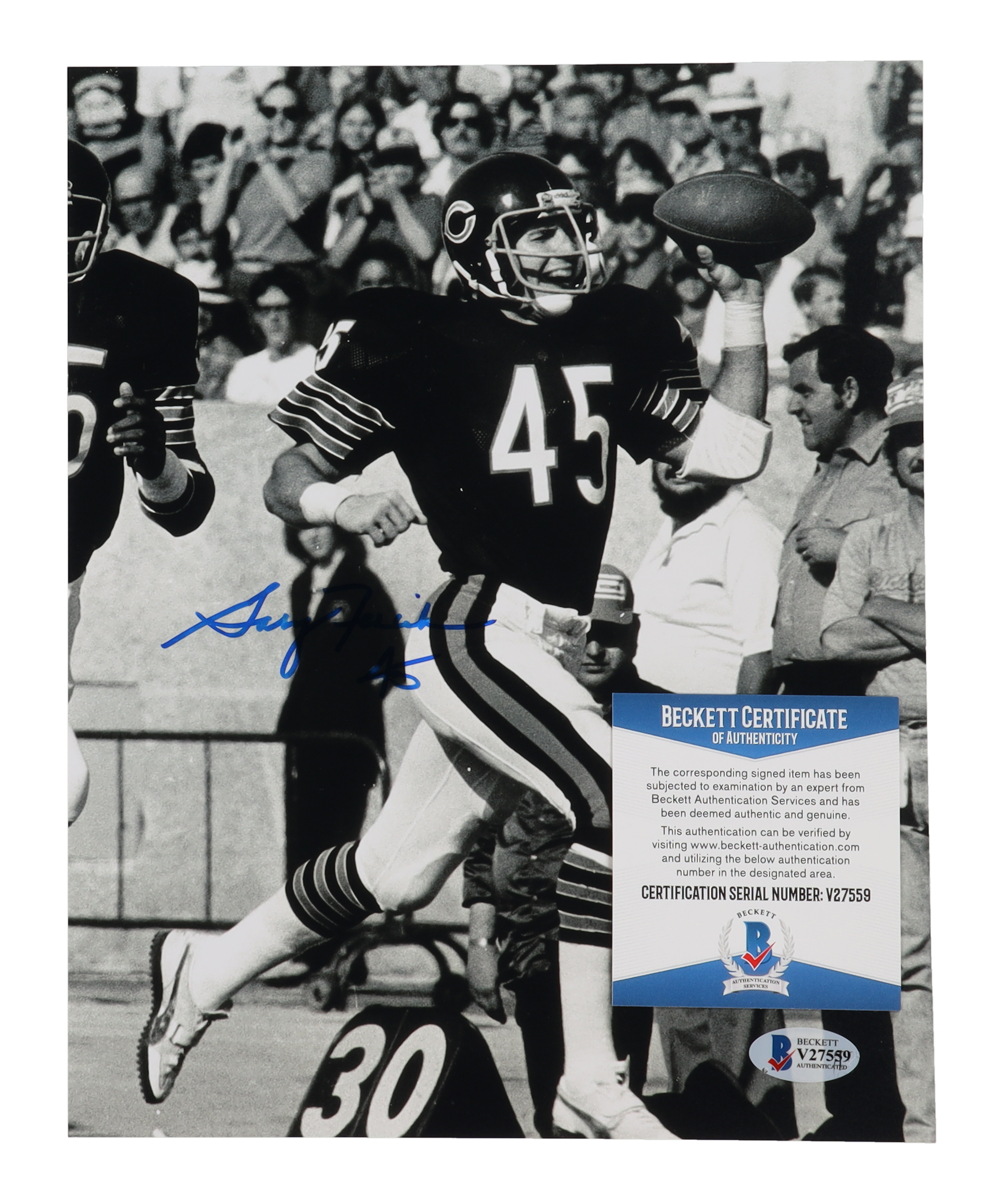 Photo measures 8" x 10" in size. Hand-signed by Gary Fencik (Chicago Bears).