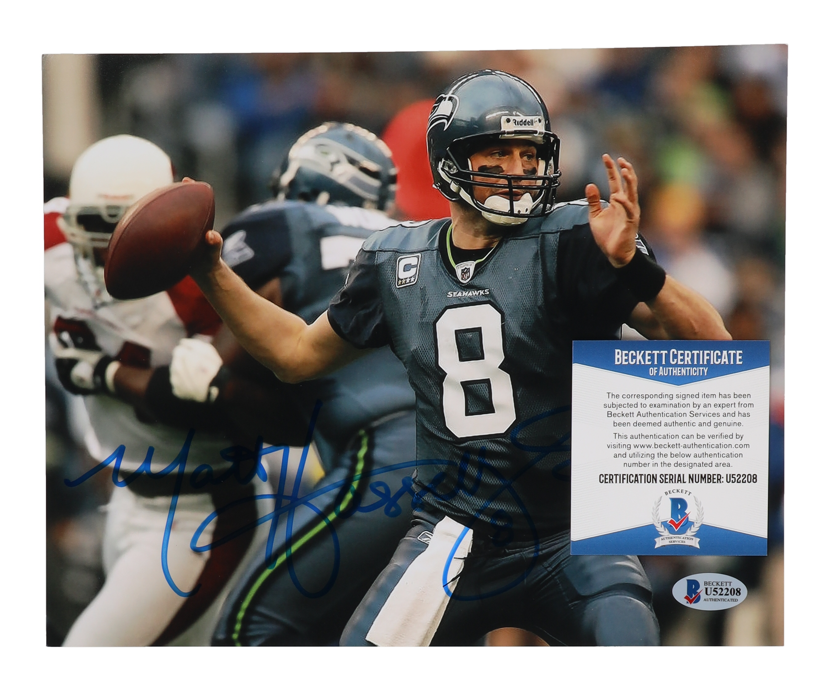 Photo measures 8" x 10" in size and has been hand-signed by Matt Hasselbeck (Seattle Seahawks).