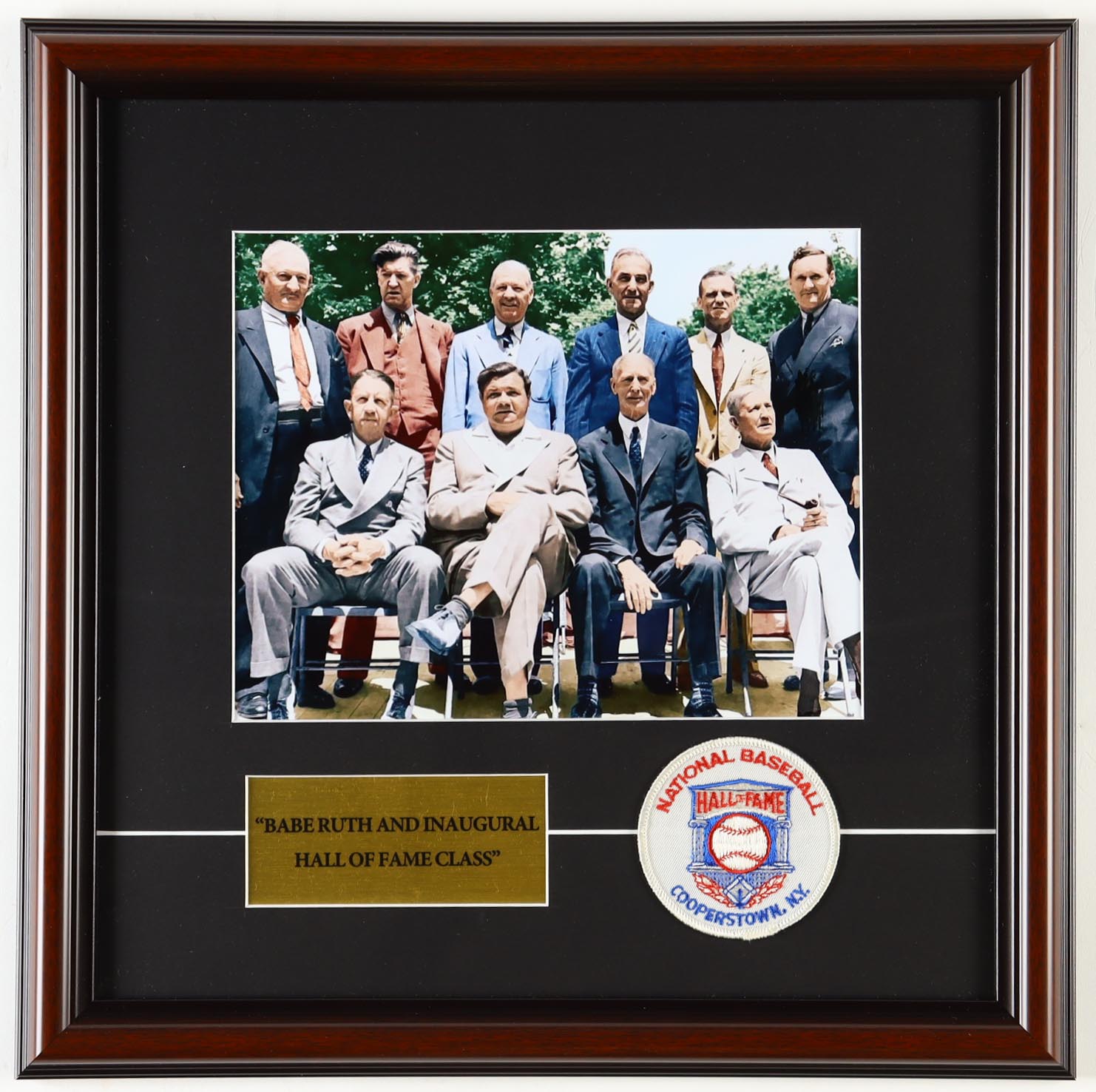 Babe Ruth & The Inaugural Hall Of Fame Class Custom Framed Colorized Photo Display with National Baseball Hall Of Fame Patch