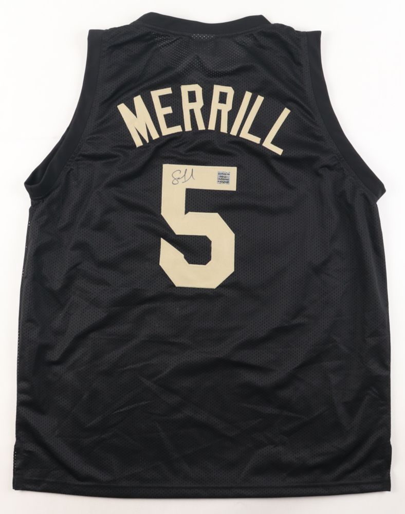 Custom jersey. Everything is sewn on, size XL. Hand-signed by Sam Merrill.